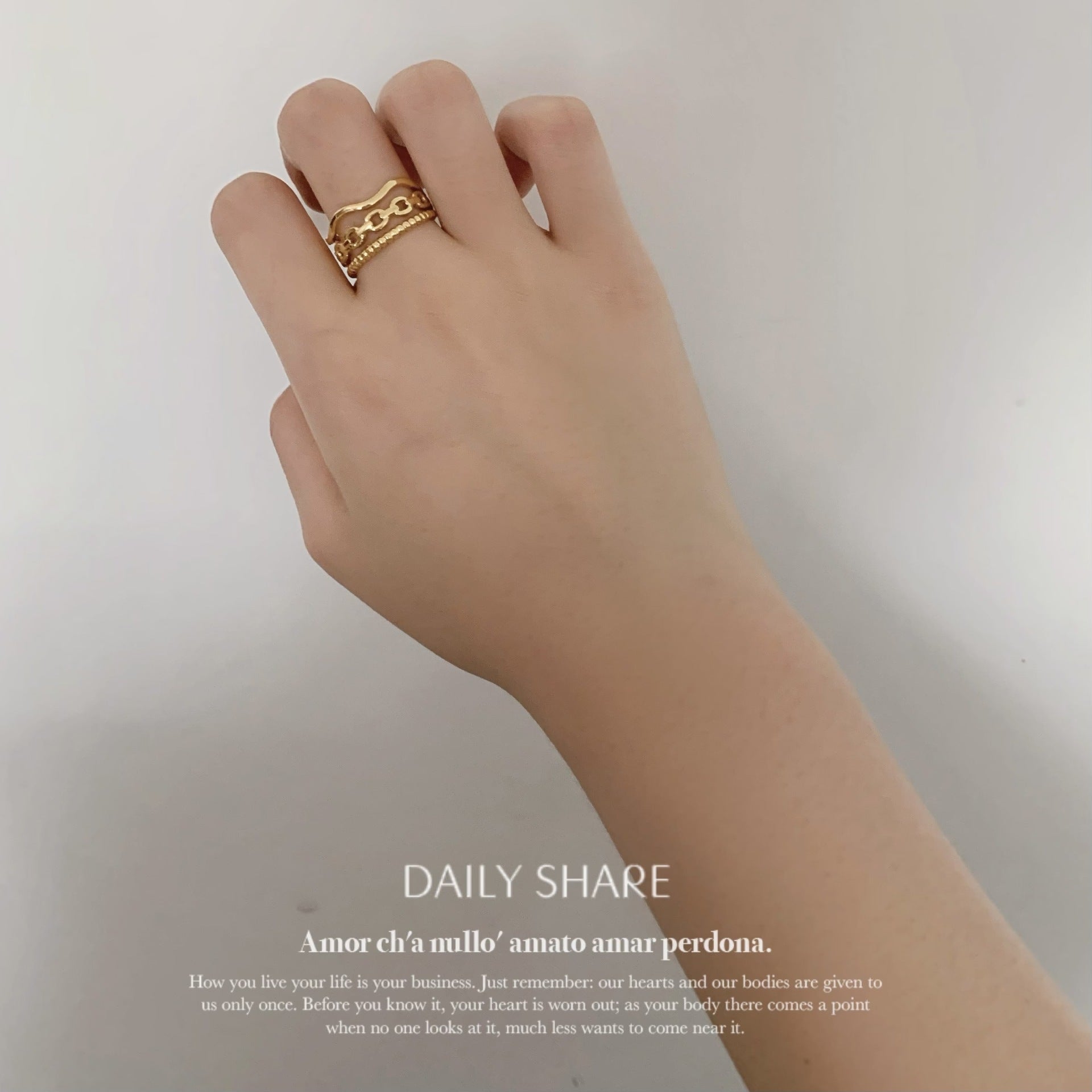 Three Layer Wave Ring With Hollow Beads Titanium Steel 18K Gold Plating Unisex Adjustable Geometric Lace Style