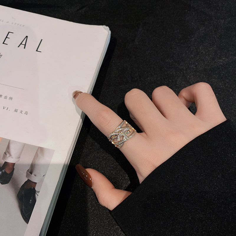 Open Adjustable Womens Butterfly Ring With Micro Inlaid Gem In Gold Plating Copper Platinum Electroplating Gold