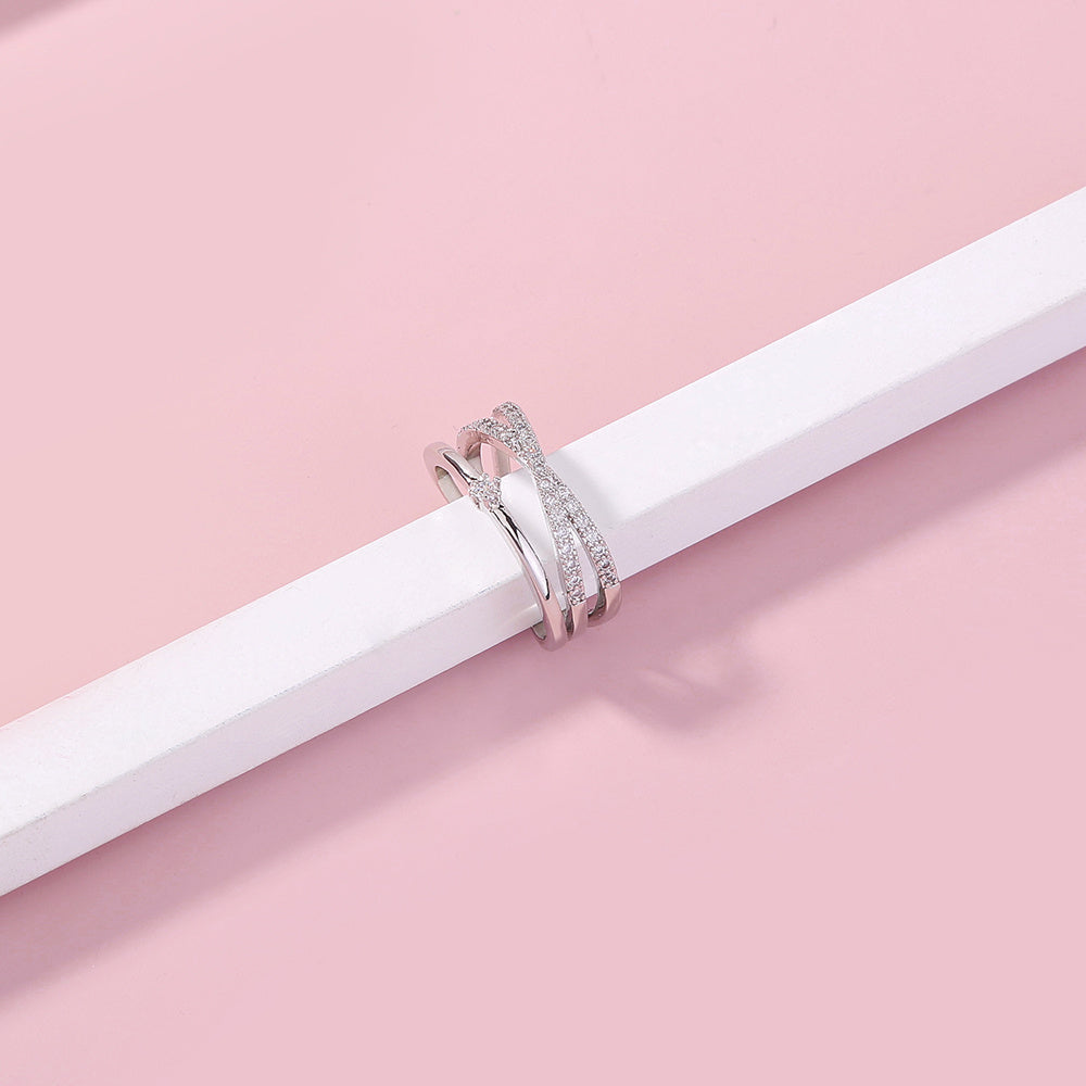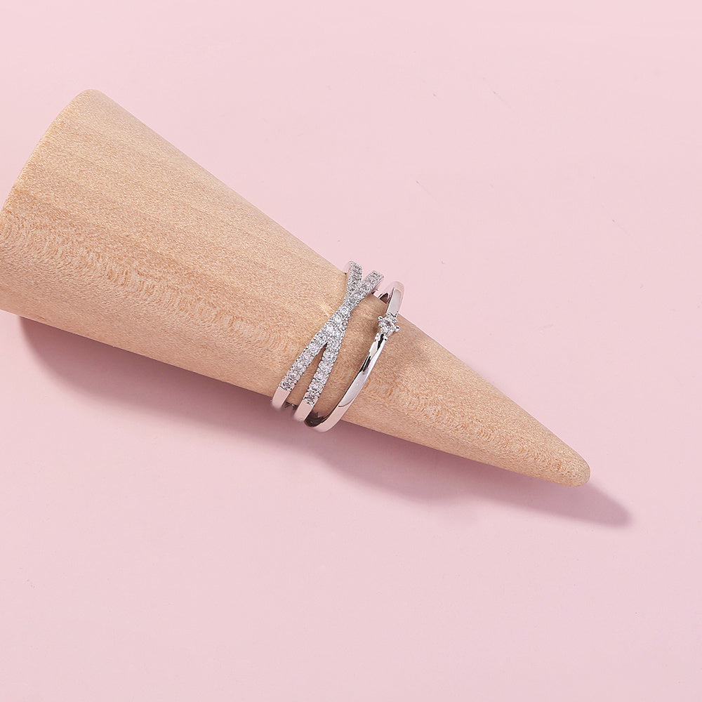 European Style Adjustable Copper Inlaid Zircon Cross Ring Jewelry Electroplated Finish Unisex Design For Everyday Wear