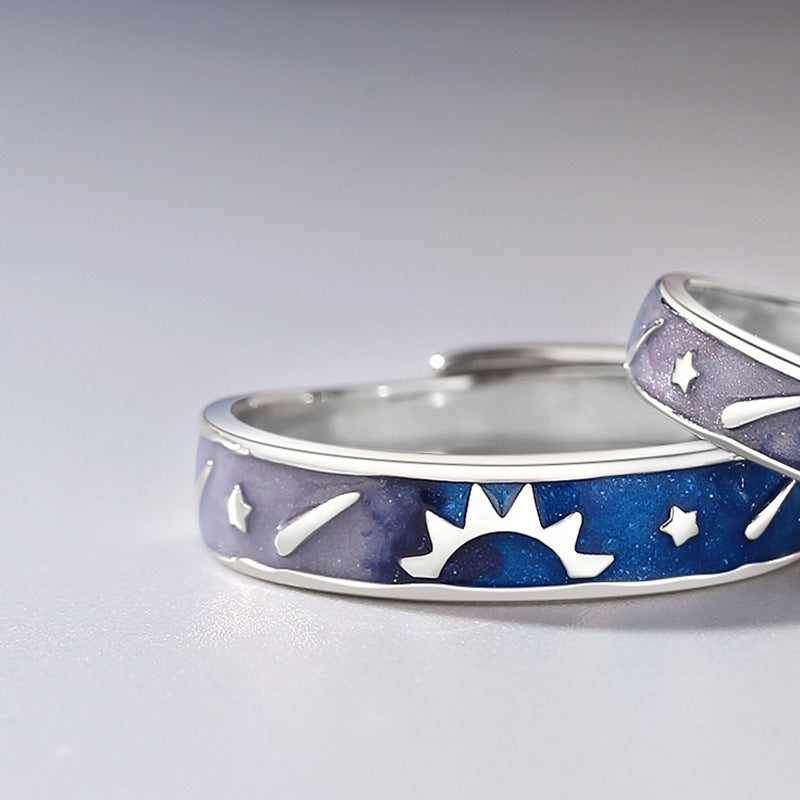 Sun And Moon Couple Rings Adjustable S925 Silver Zircon Matching Ring Set Electroplated With Cubic Zirconia Gems