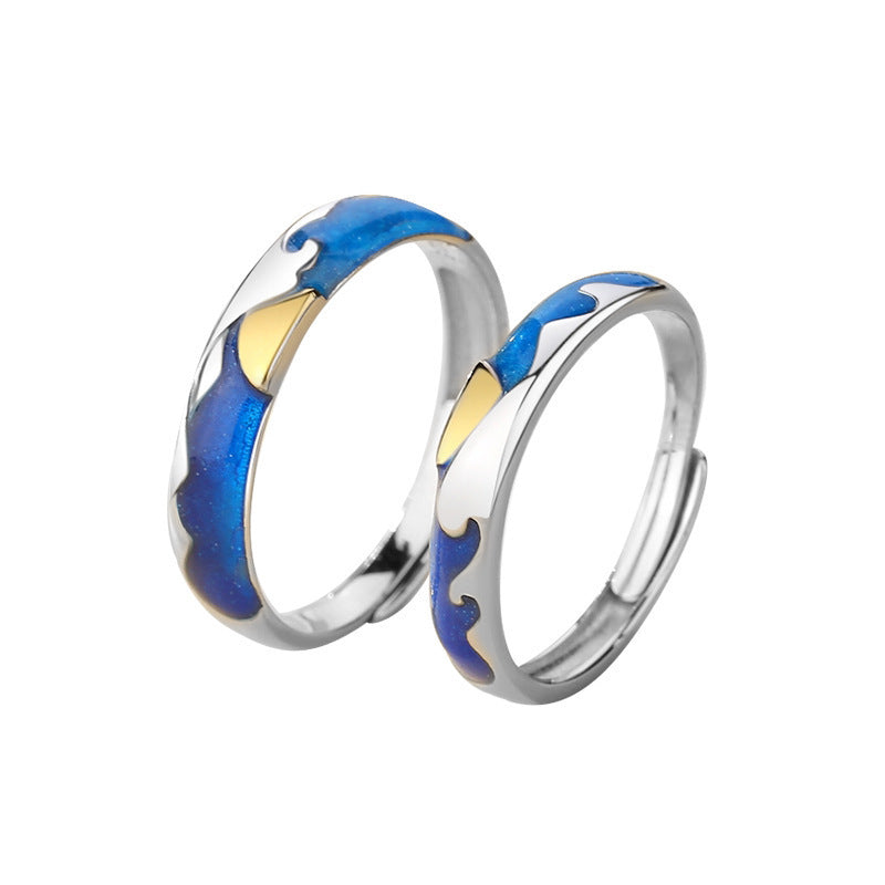 Sea Moon Ring Adjustable Enamel Sterling Silver Jewelry