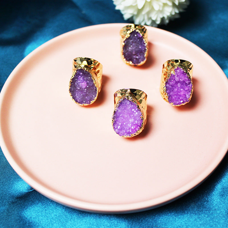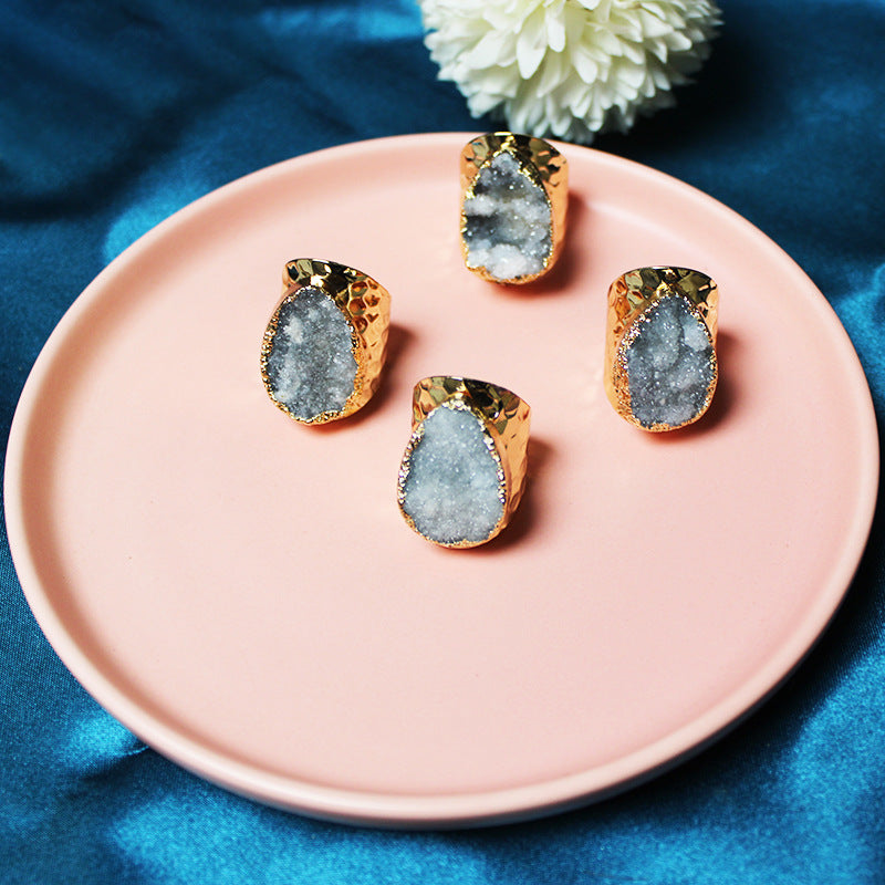 Oval Crystal Cluster Wrap Ring Color Plated Inlay Style For Women Lake Blue Treasure Blue Rose Red Original Color