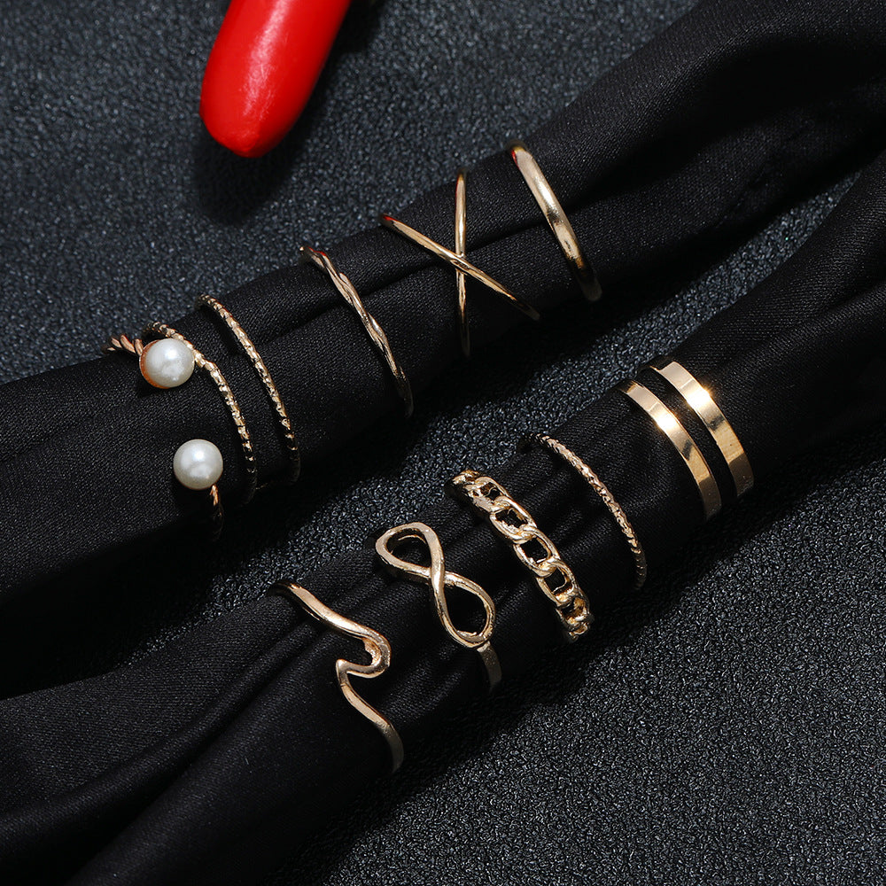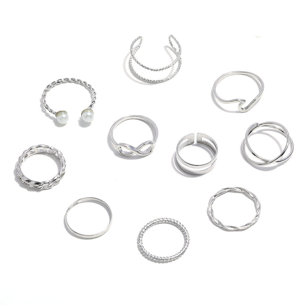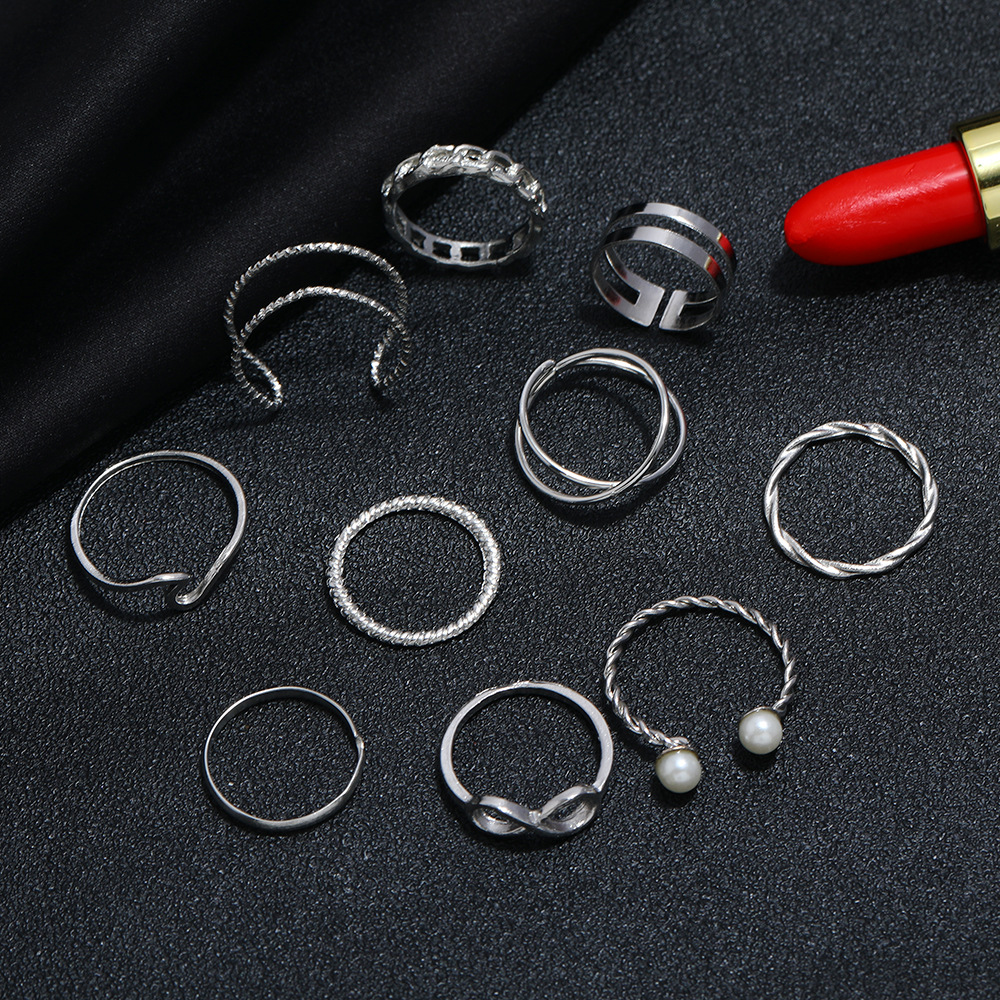 Womens Alloy Ring Set Pearl Retro Rings Fashion Jewelry Accessories Everyday Wearable Special Occasions Silver