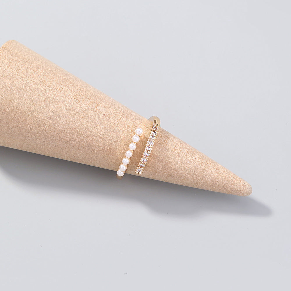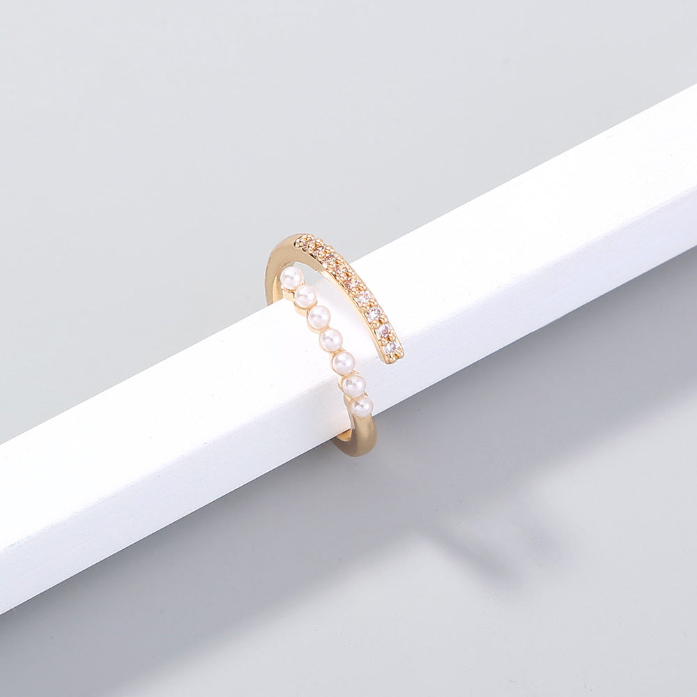 Womens Adjustable Zircon Pearl Ring Copper Plated Jewelry Elegant Sparkling Accessory Everyday Sparkle Jewelry