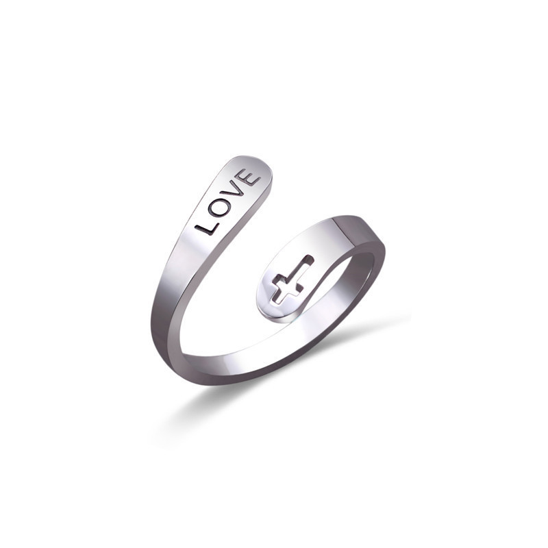Cross Double Titanium Steel Ring Simple Geometry Silver