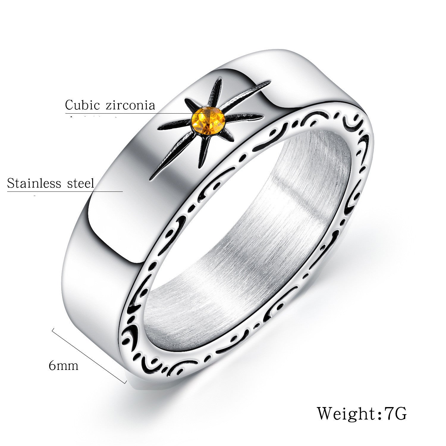 Mens Retro Sun Titanium Steel Ring Geometry Korean Style Stainless Jewelry Minimal Mens Ring With Korean Style