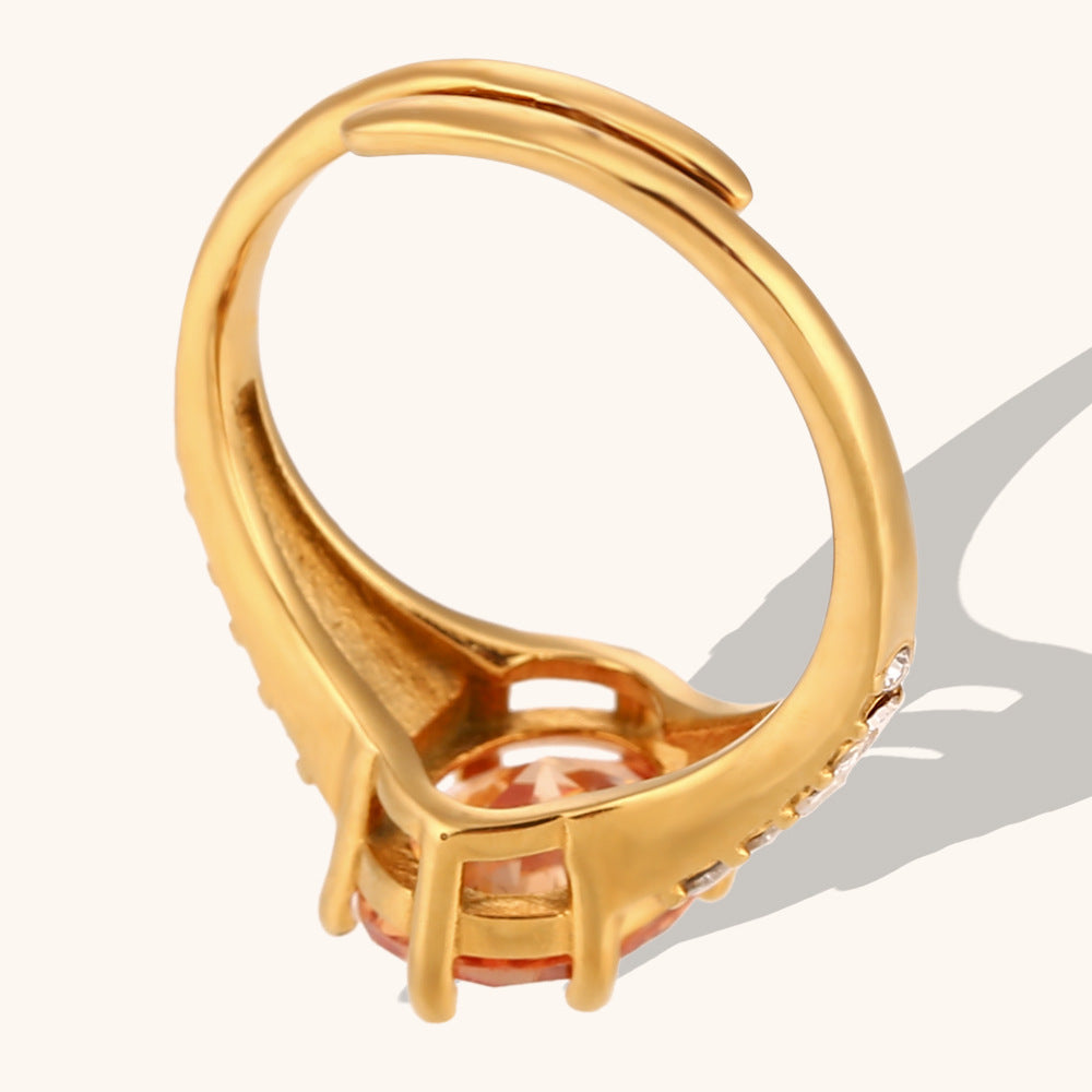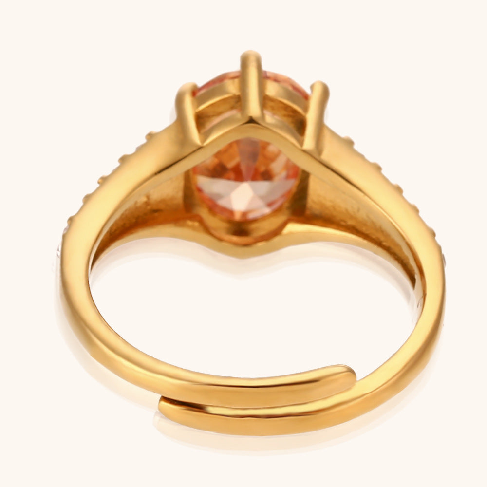 Women Stainless Steel Ring Adjustable Opening Oval Zircon Gemstone Simple Luxury Dark Champagne White Diamonds