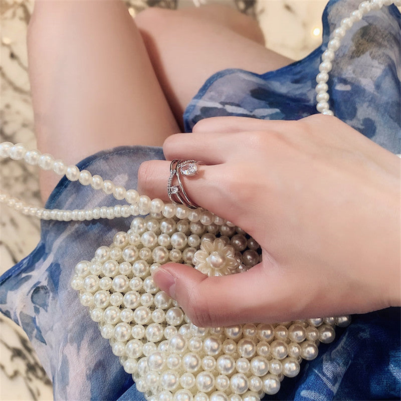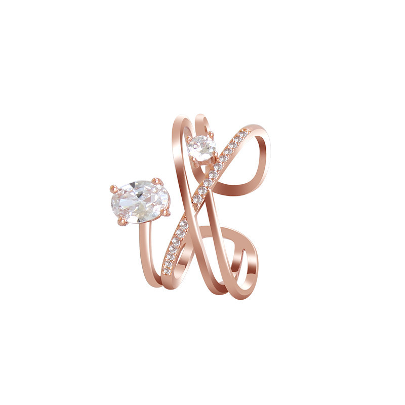 Rose Gold Zircon Geometric Bands For Women Adjustable Fashion Jewelry Elegant Everyday WearableTrendy Accessory