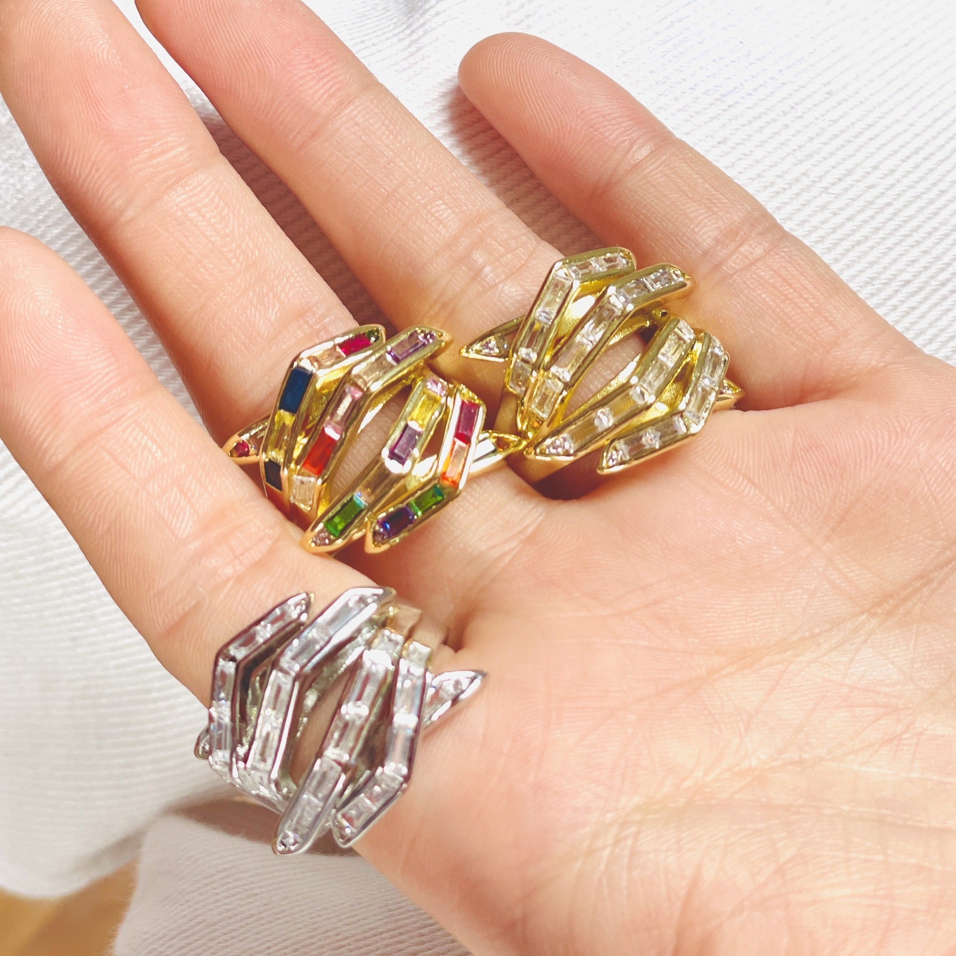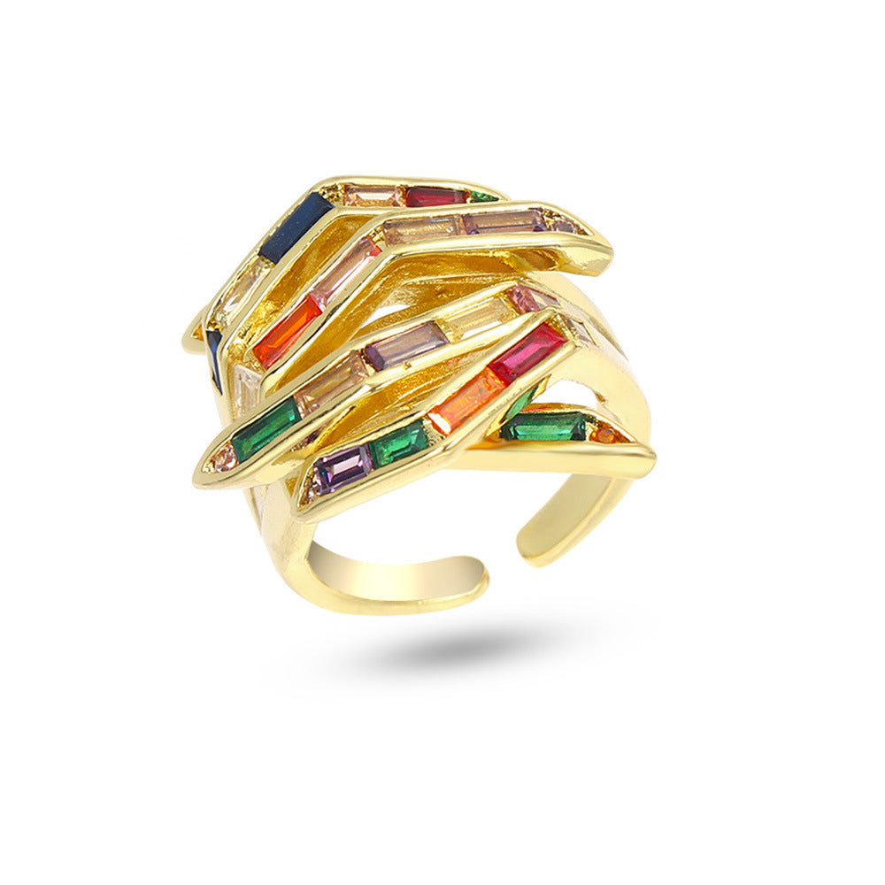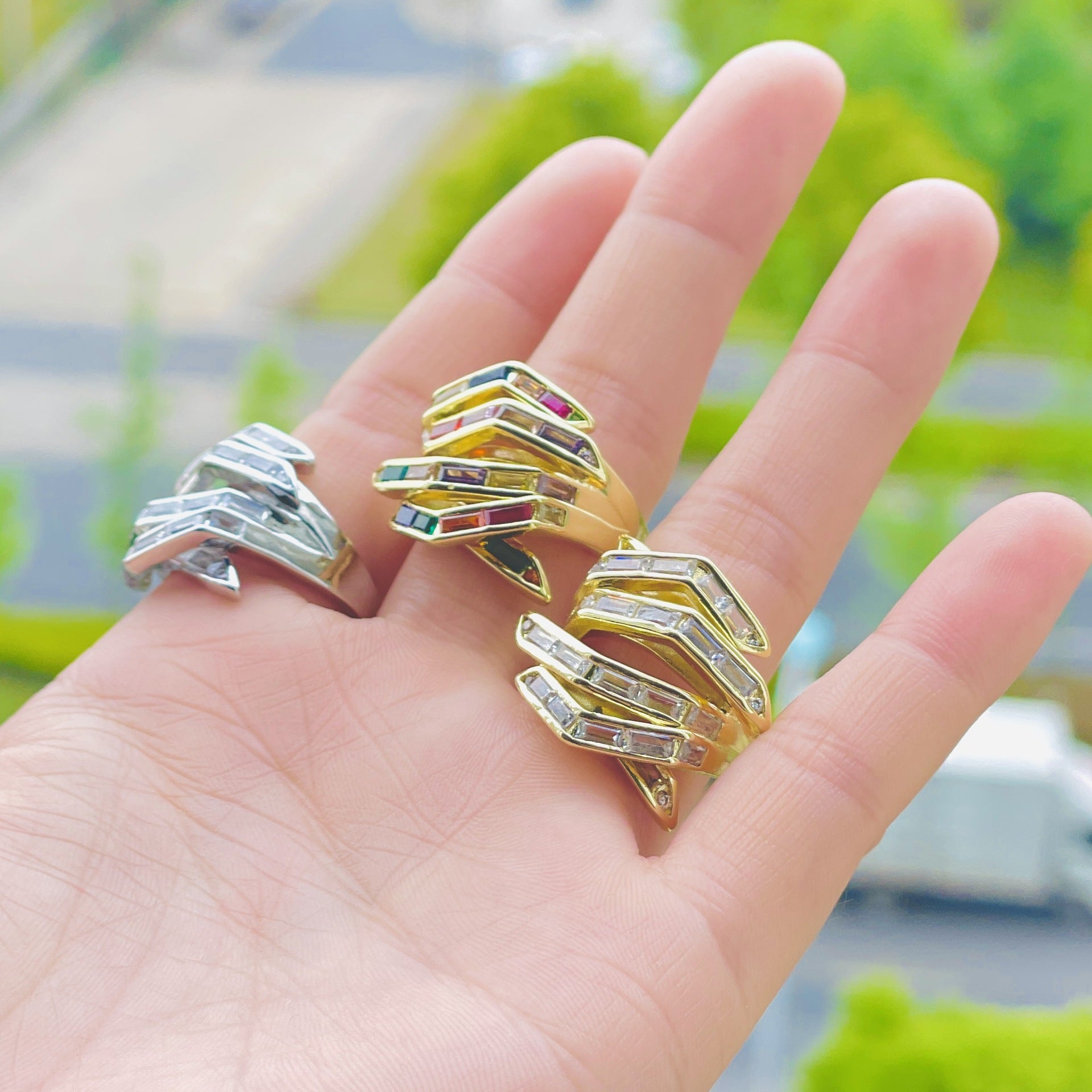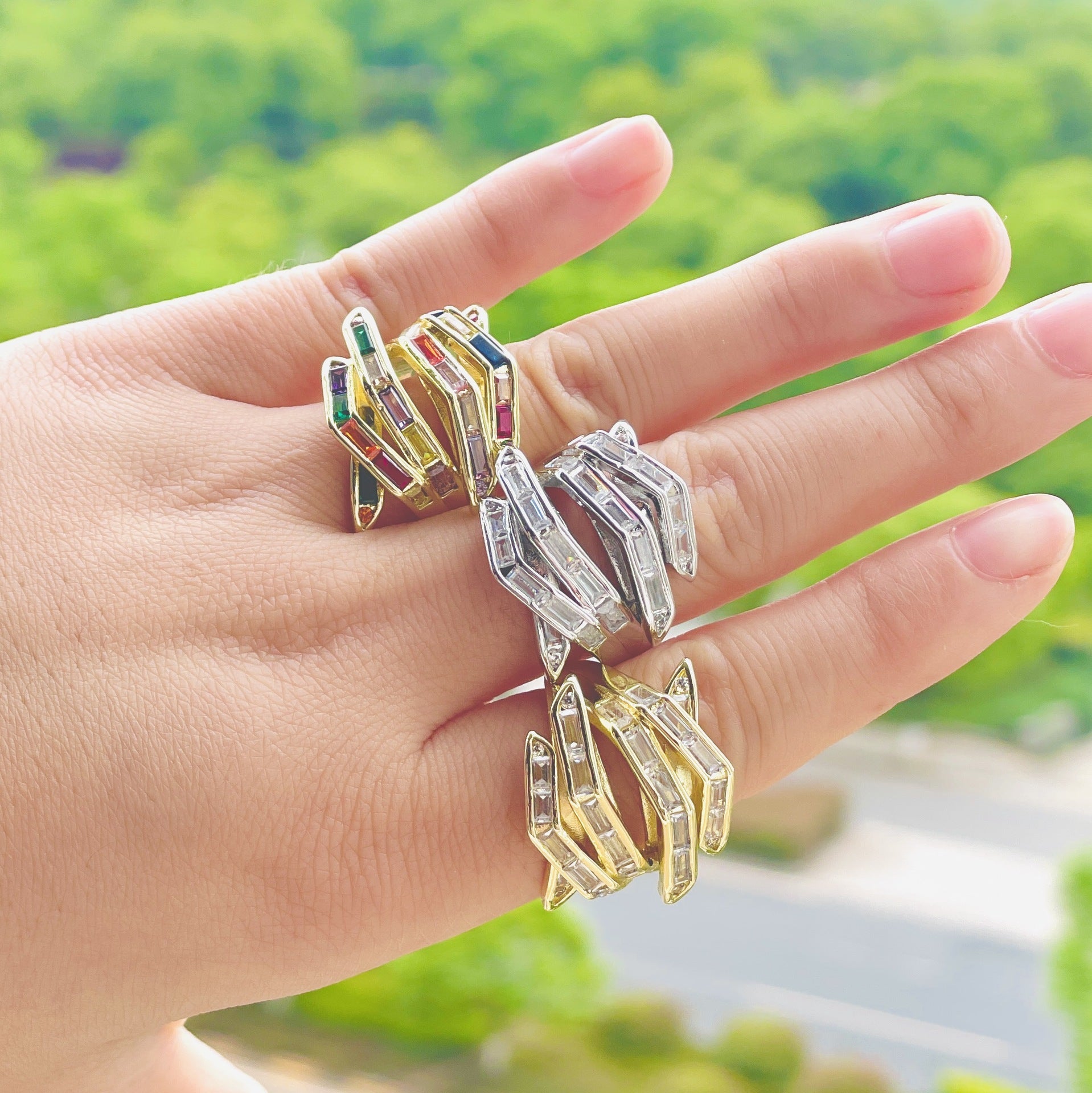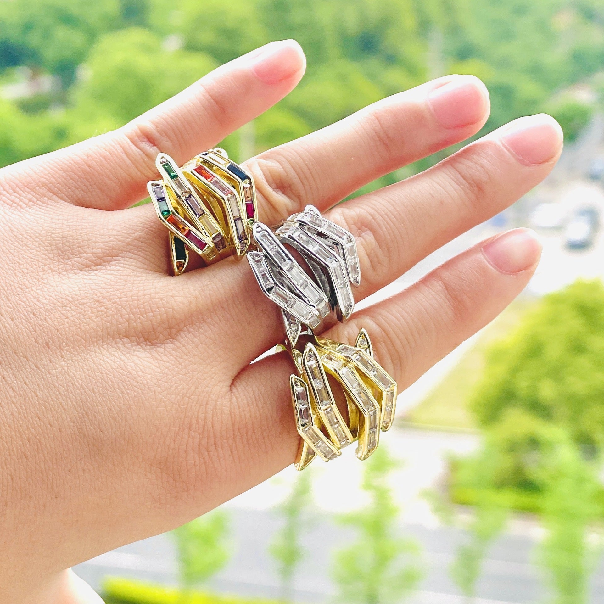 Personalized Square Zircon Ring For Women Adjustable Copper Microinlaid Jewelry Silver White Stone Fine Quality