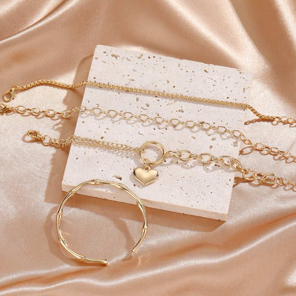 Womens Fashion Bracelet Set 4 Piece Alloy Electroplated Love Bracelets Personalized Jewelry Gift For Her Style