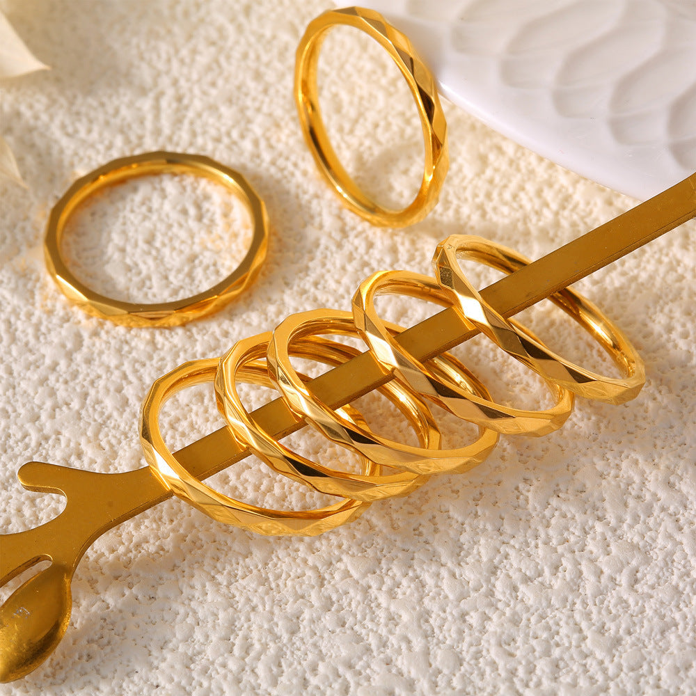 Personalized Minority All Match Fashion Geometry Pattern Prismatic Design Ring Golden Titanium Steel For Women