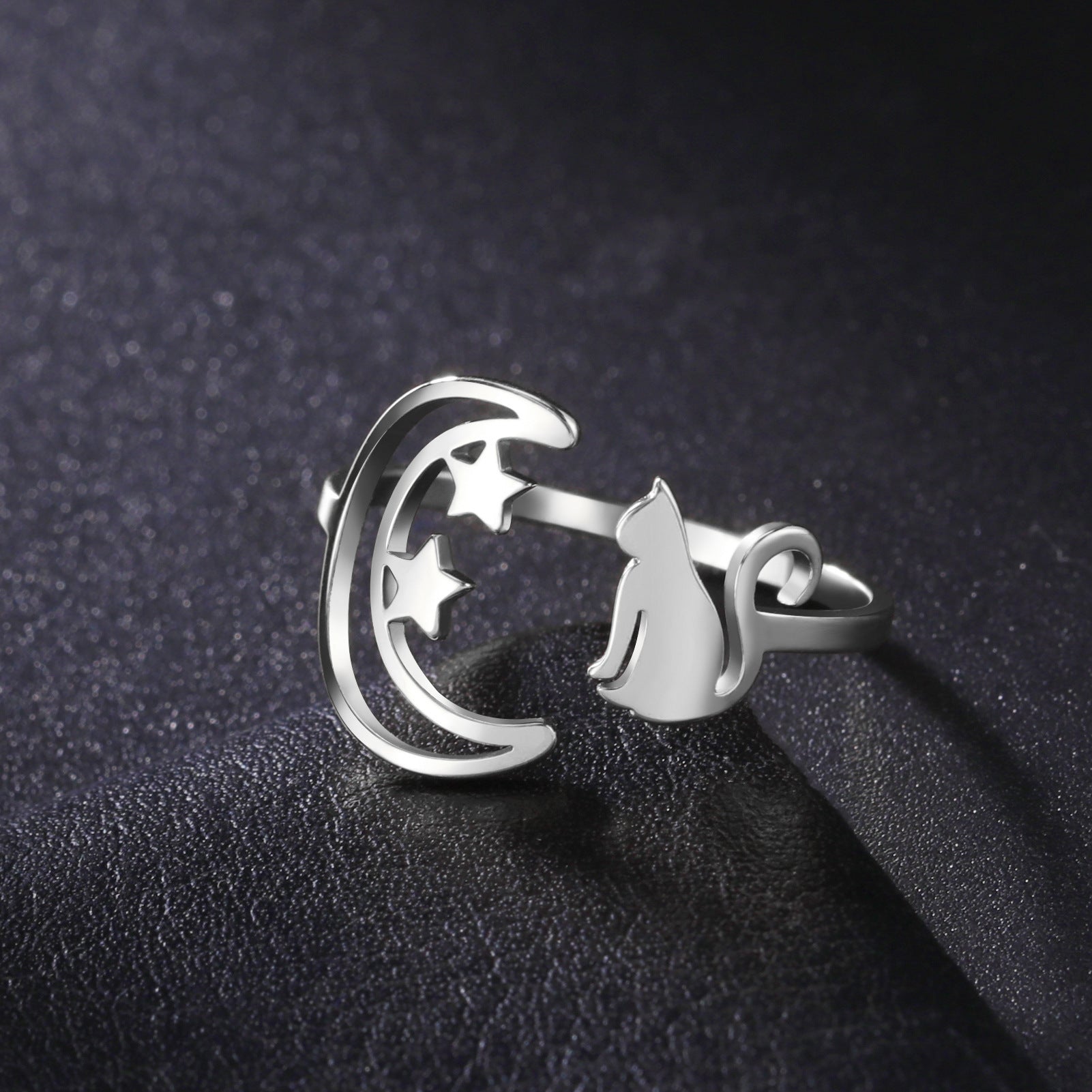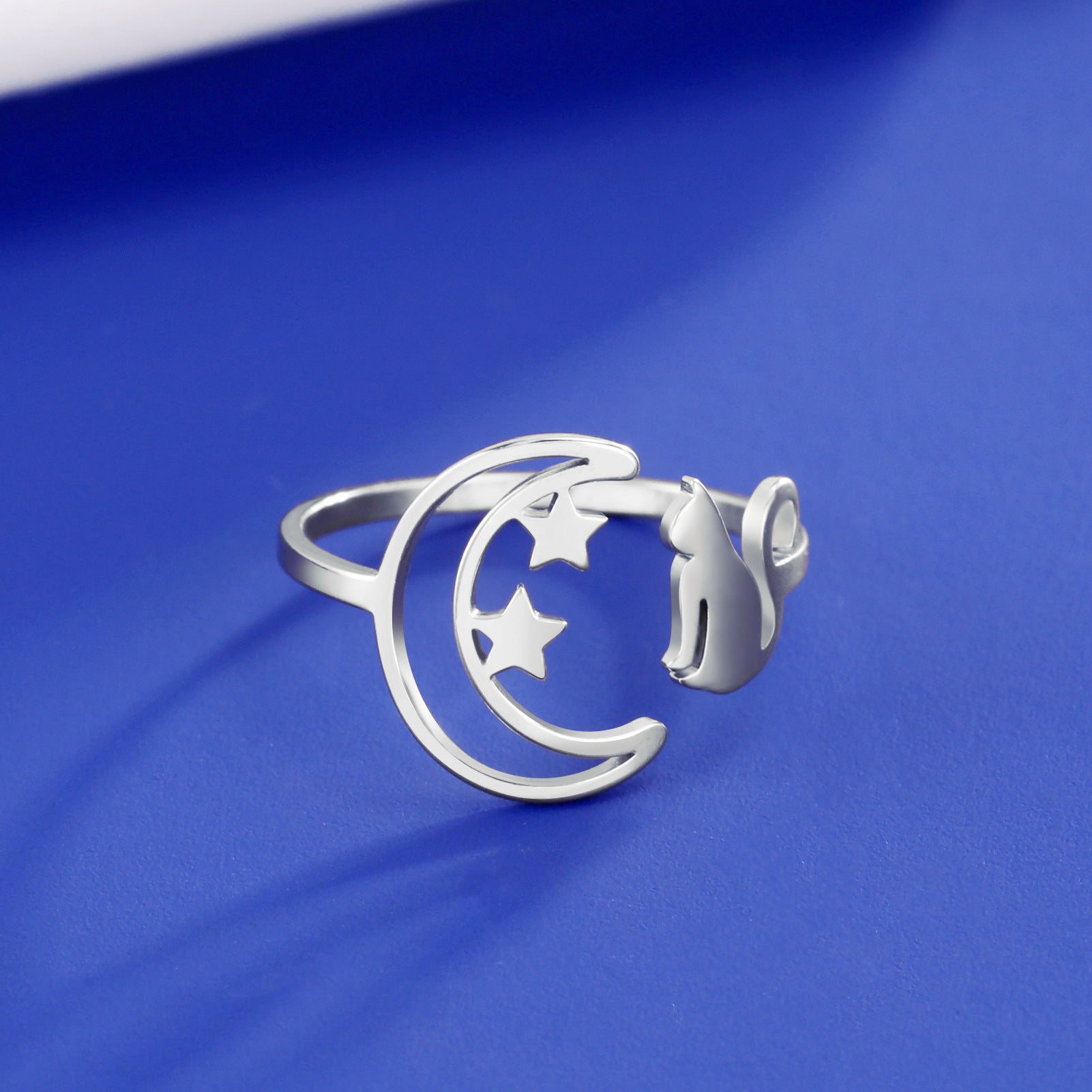 Unisex Crescent Star Ring Stainless Steel Gold Tone