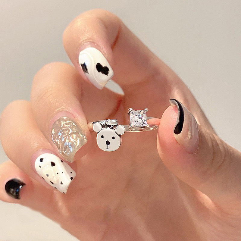 Vintage Bear Ring Adjustable Copper Band With Zircon Inlay Cute Animal Fashion Jewelry Gift For Women Era Cute