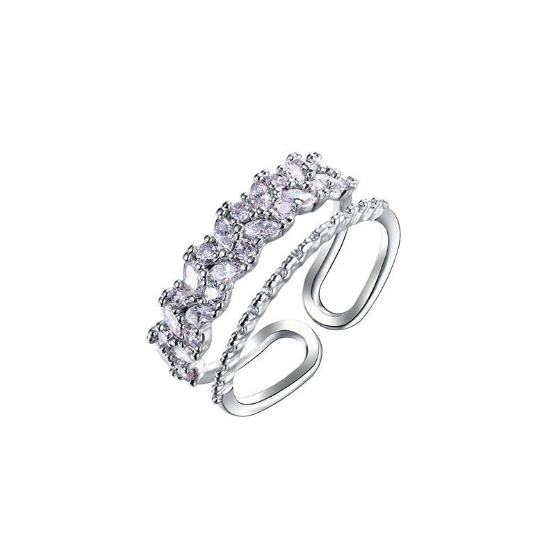 Petal Index Finger Ring Copper Adjustable Silver Tone