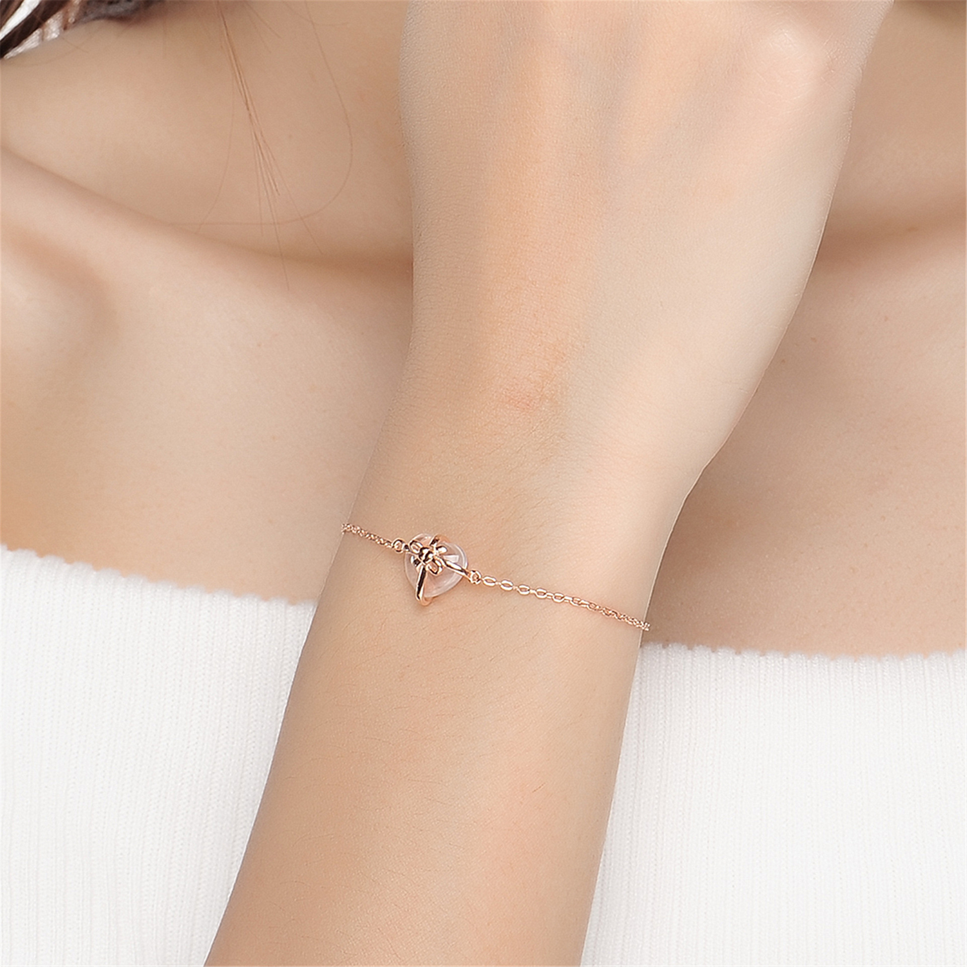 Heart Charm Bracelet Copper Electroplated Rose Pink Crystal Heart Motifs Stylish Korean Style Jewelry For Women