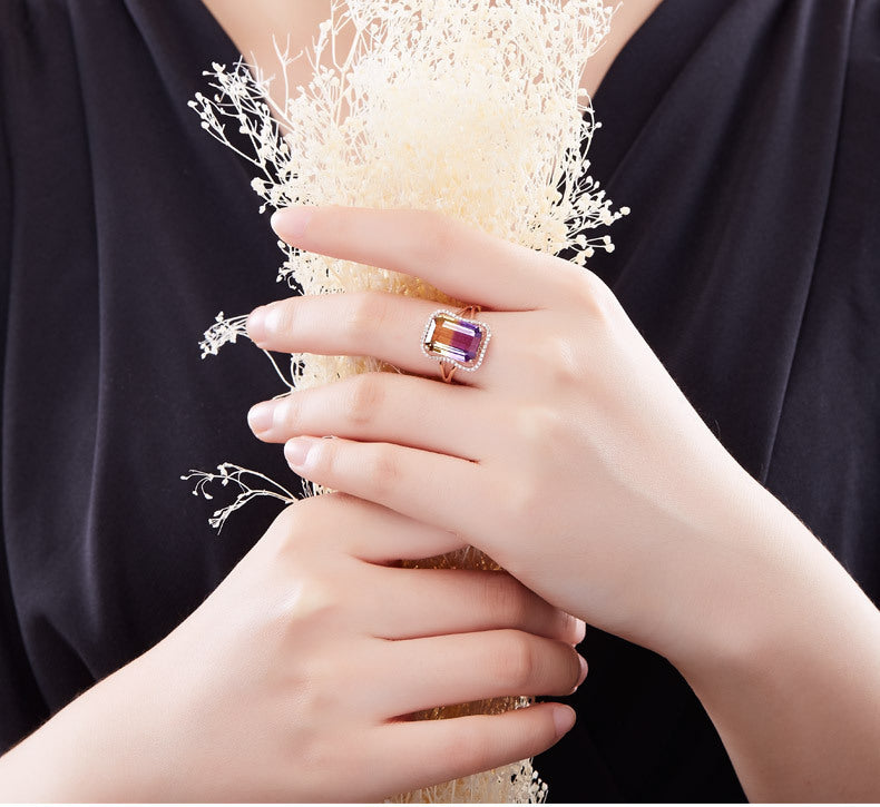 Rose Gold Plated Open Ring With Zircon Inlay Adjustable Geometric Design For Women Wedding For Daily Wear Gift