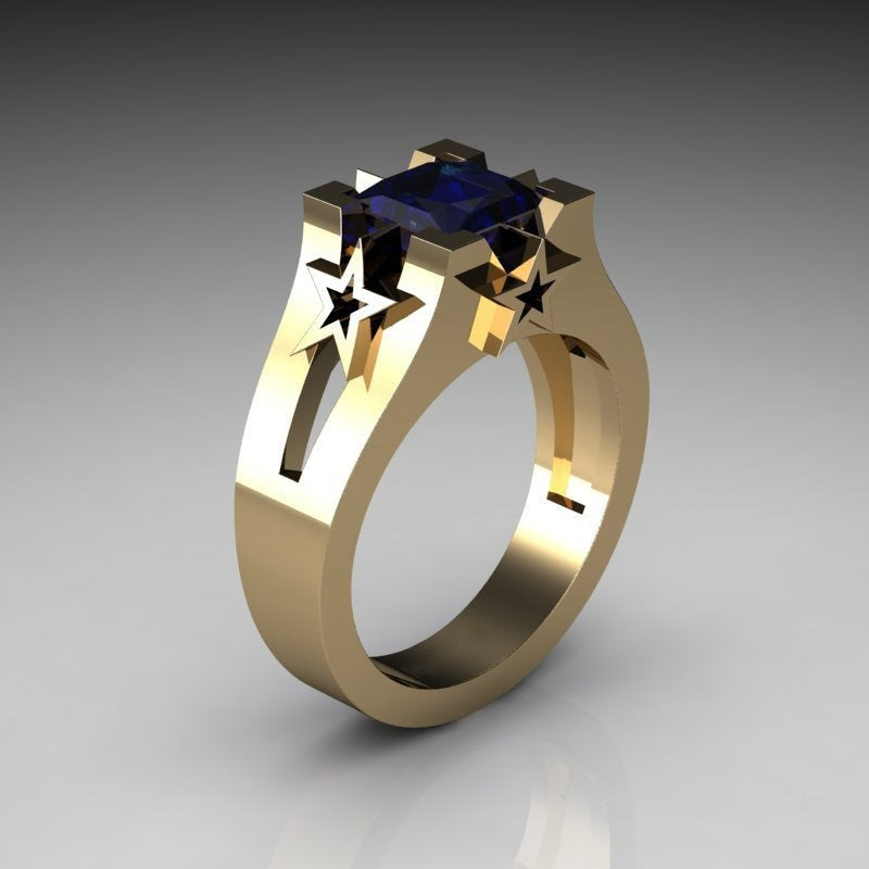 Plated Sapphire Simulated Diamond Ring With Copper Sterling Silver Inlay Unisex Style For Gift Sizes 6 7 8 9 10 11 12