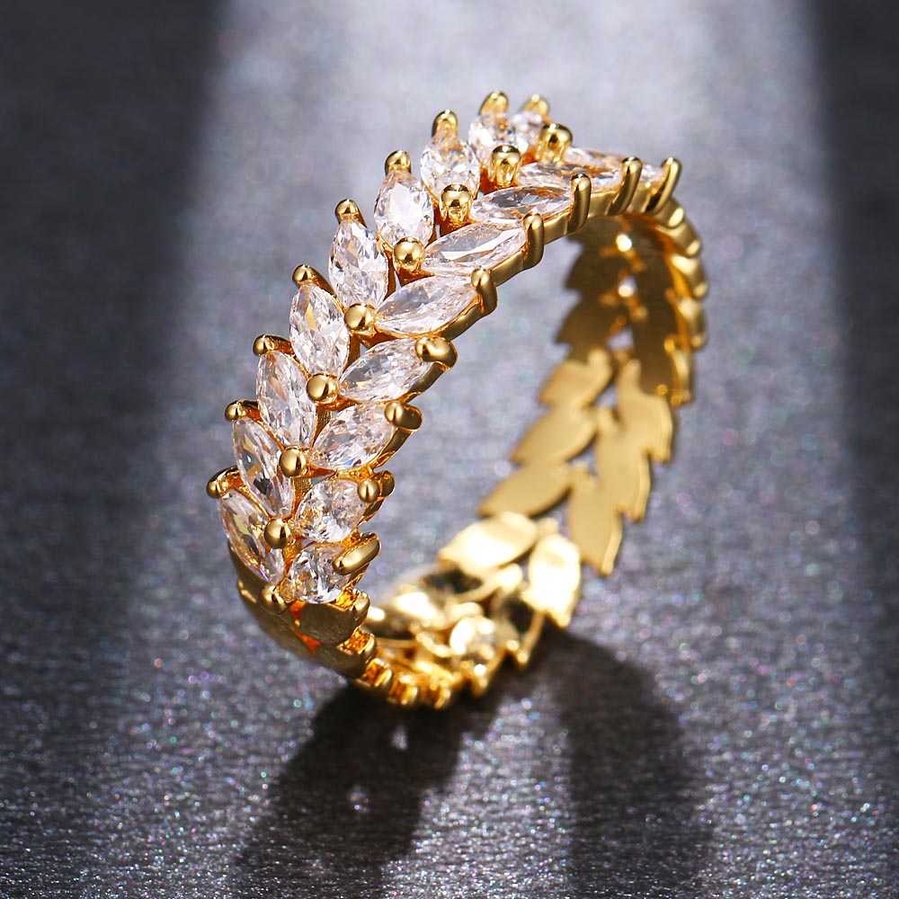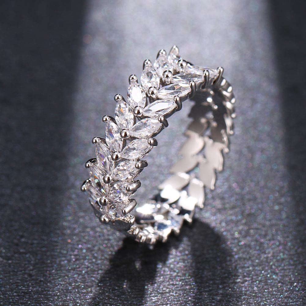 Womens Double Row Zirconia Ring Full Diamond Design Platinum Plated Fashion Jewelry Statement Ring Gift Trendy