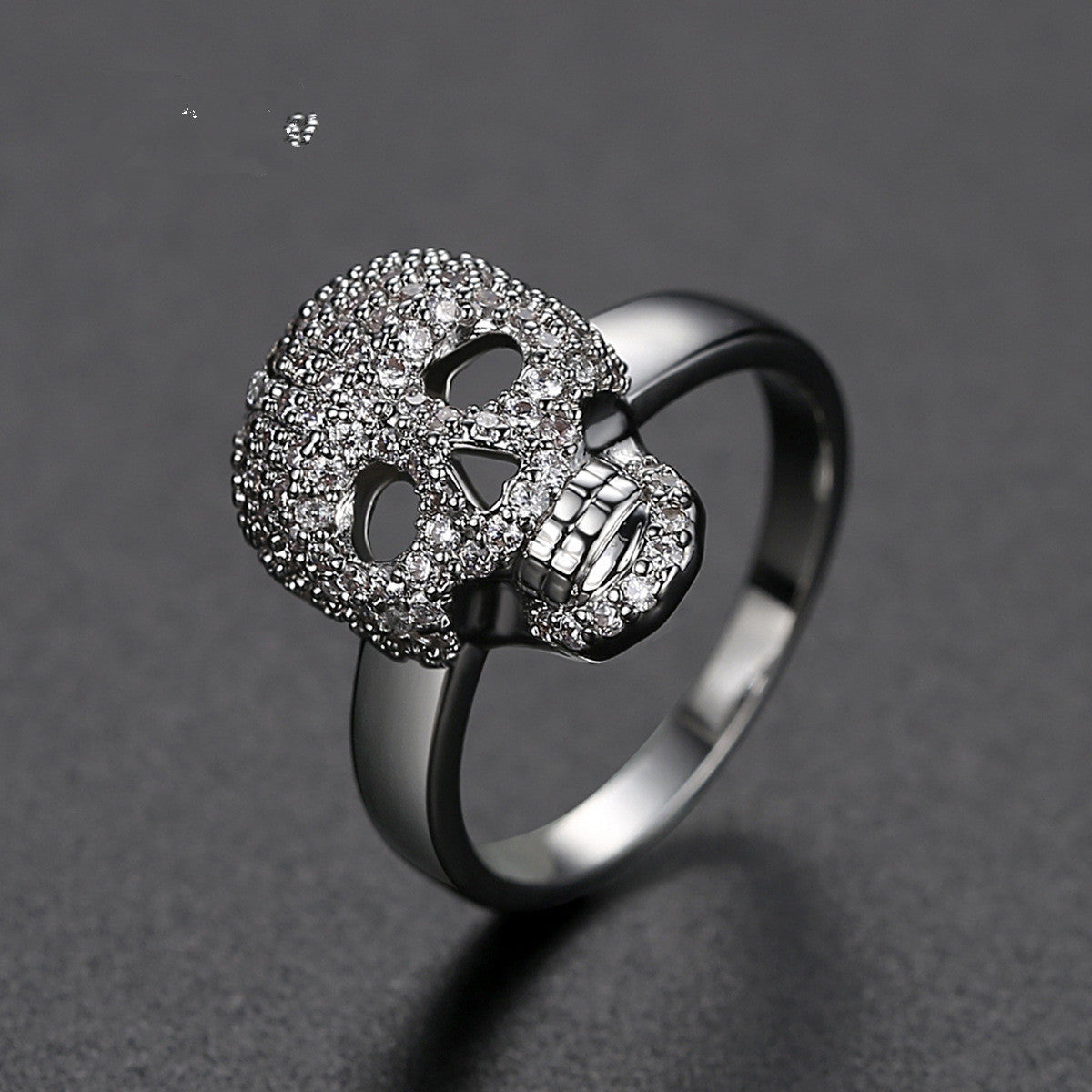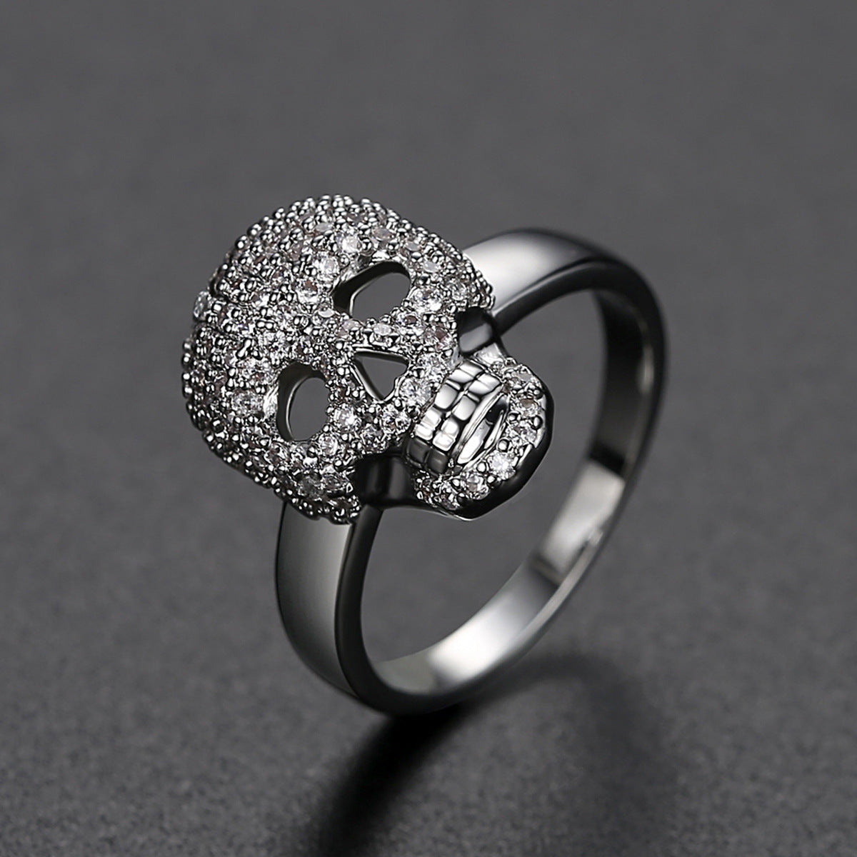Mens Skull Ring Copper Retro Exaggerated Design with Zircon Inlay Hip Hop Biker Ring Punk Rock Jewelry Gift for Him Unisex Ring Fashion Ring