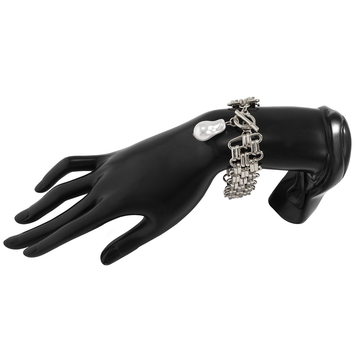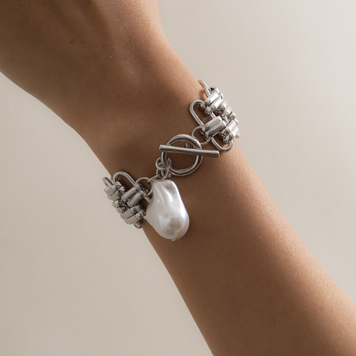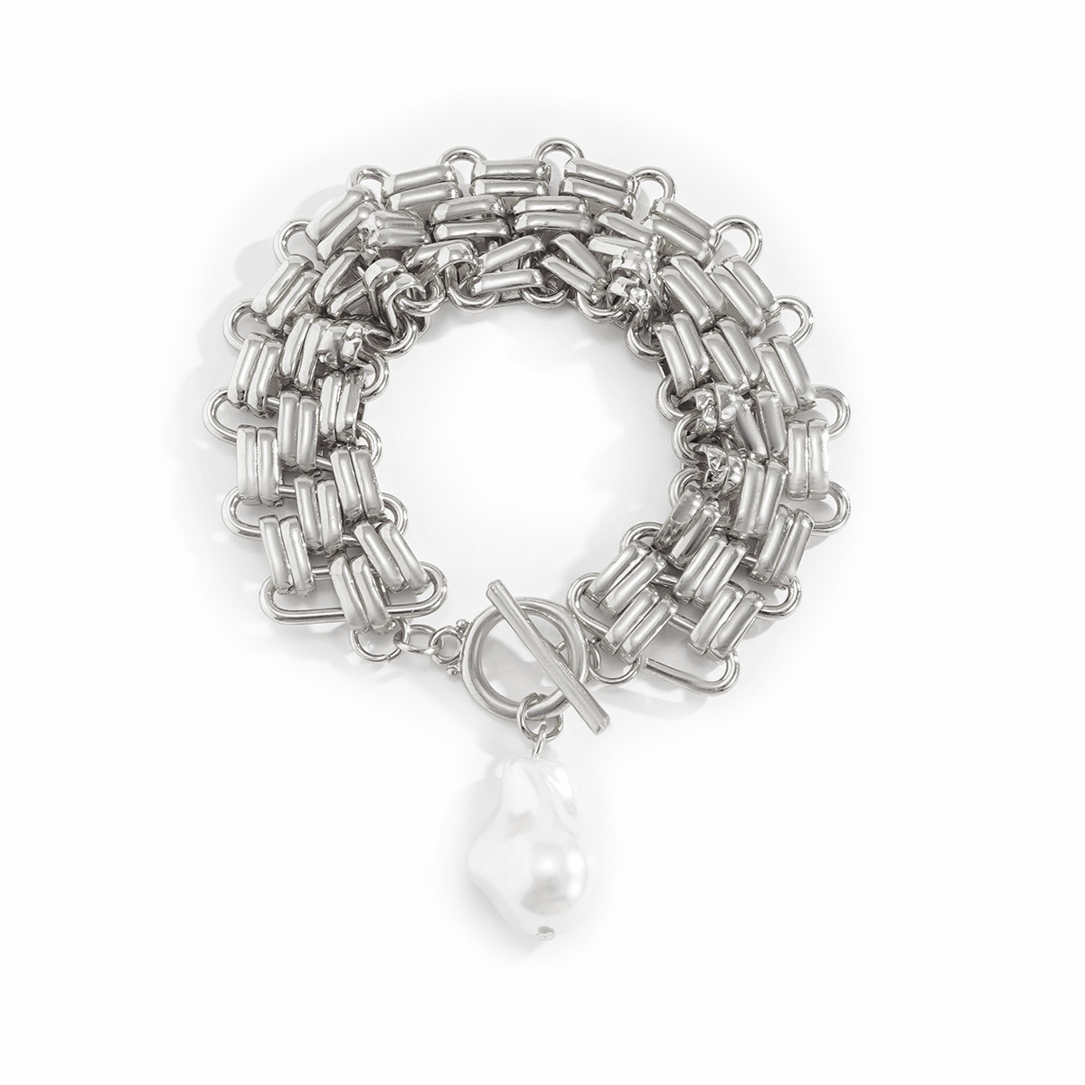 Womens Chain Bracelet With Artificial Pearls Thick Chain Geometric Design Gold Plated Iron Bracelet Pearl Iron