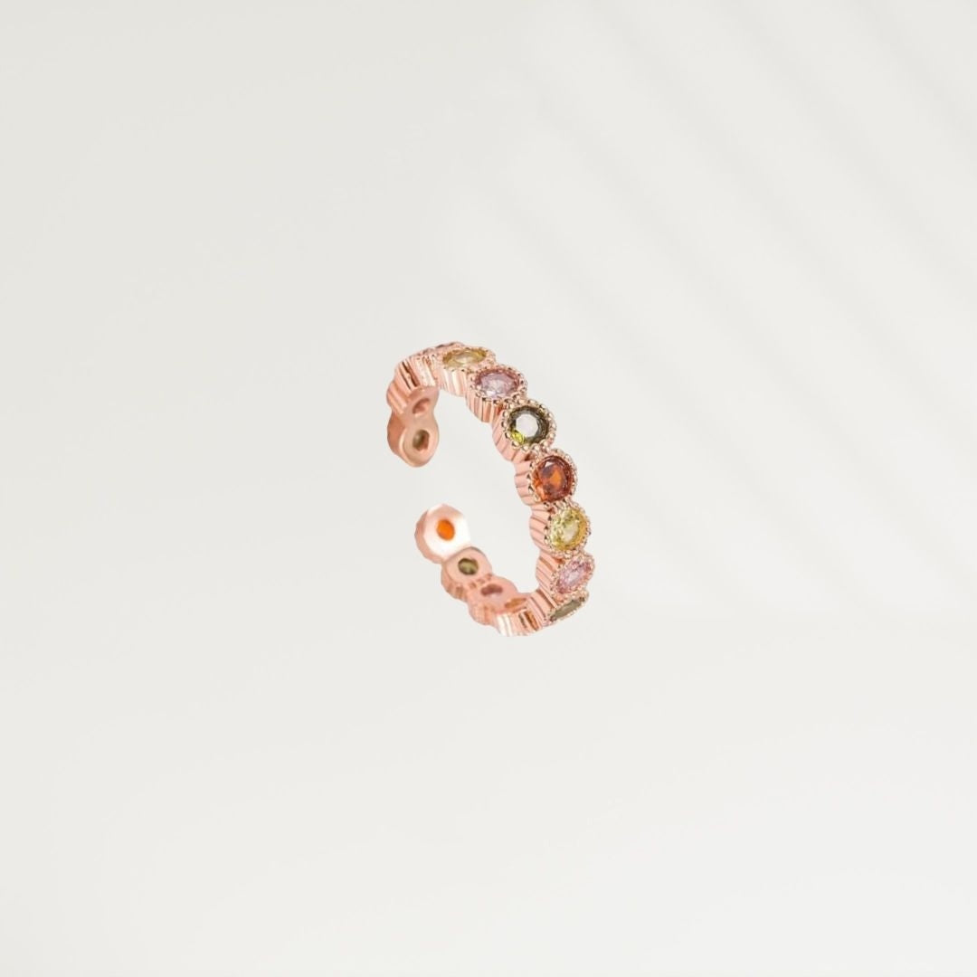 Womens Adjustable Open Ring With Colorful Rhinestones Round Geometry Design Copper Exotic Statement Ring For Daily Wear