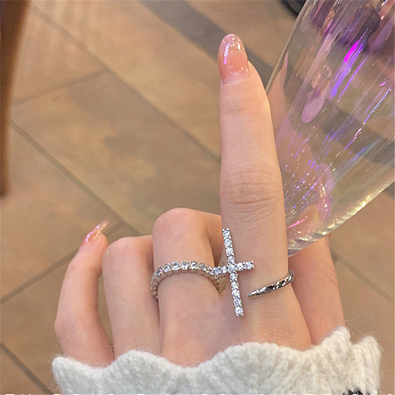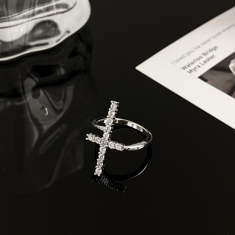 Womens Adjustable Zircon Ring Inlaid Gold Plated Copper