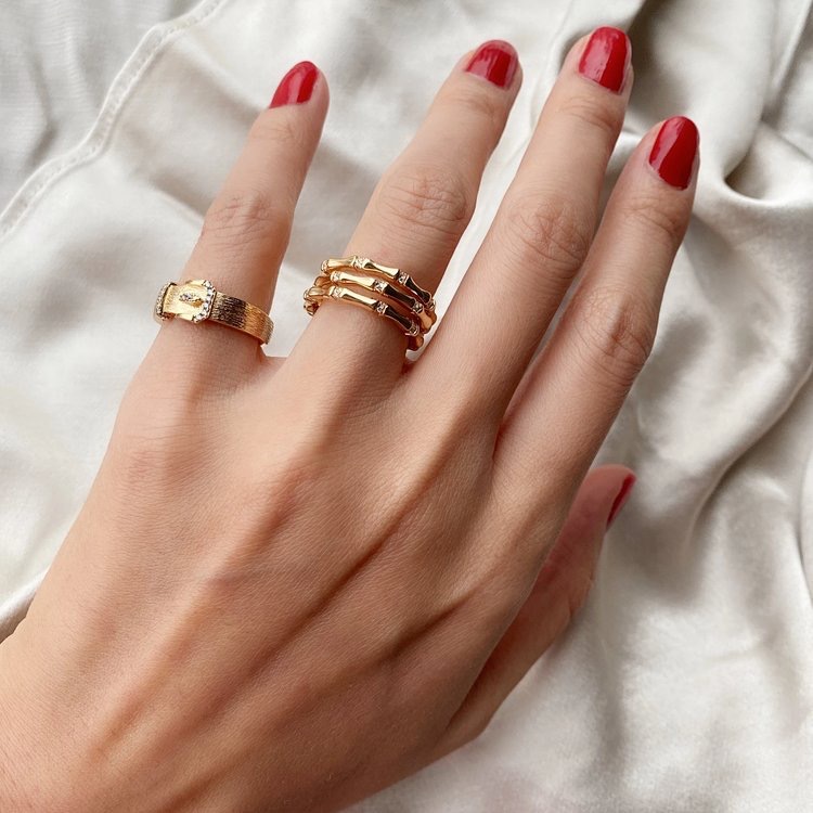 Resilient Bamboo Ring Female Golden Niche Exquisite European And American Simple Trendy Ring