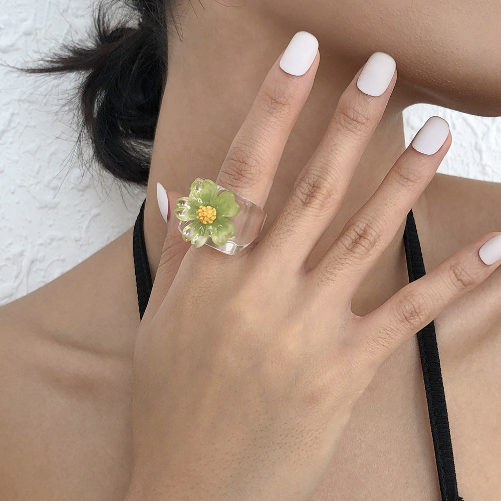 Resin Rings For Women Colorful Acrylic Geometric European Style Statement Jewelry Colorful Resin Ring Ornament