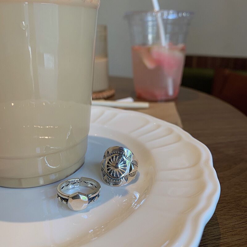 Womens Sterling Silver Ring Vintage Geometric Adjustable Open Band Jewelry Travel Souvenir Gift For Daily Wear