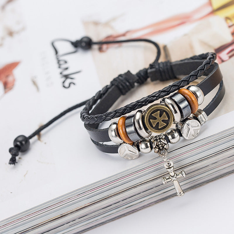 Unisex Leather Bracelet With Alloy Cross European Retro Design Woven Wristband Fashion Jewelry For Men And Women