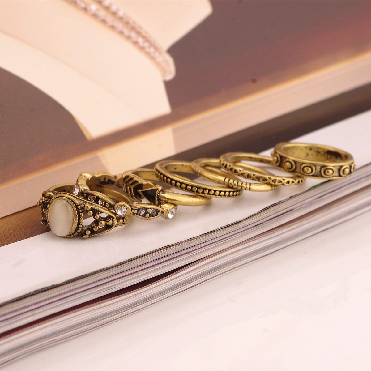 Vintage Ring Set Opal Drop Shape Ethnic Design Jewelry