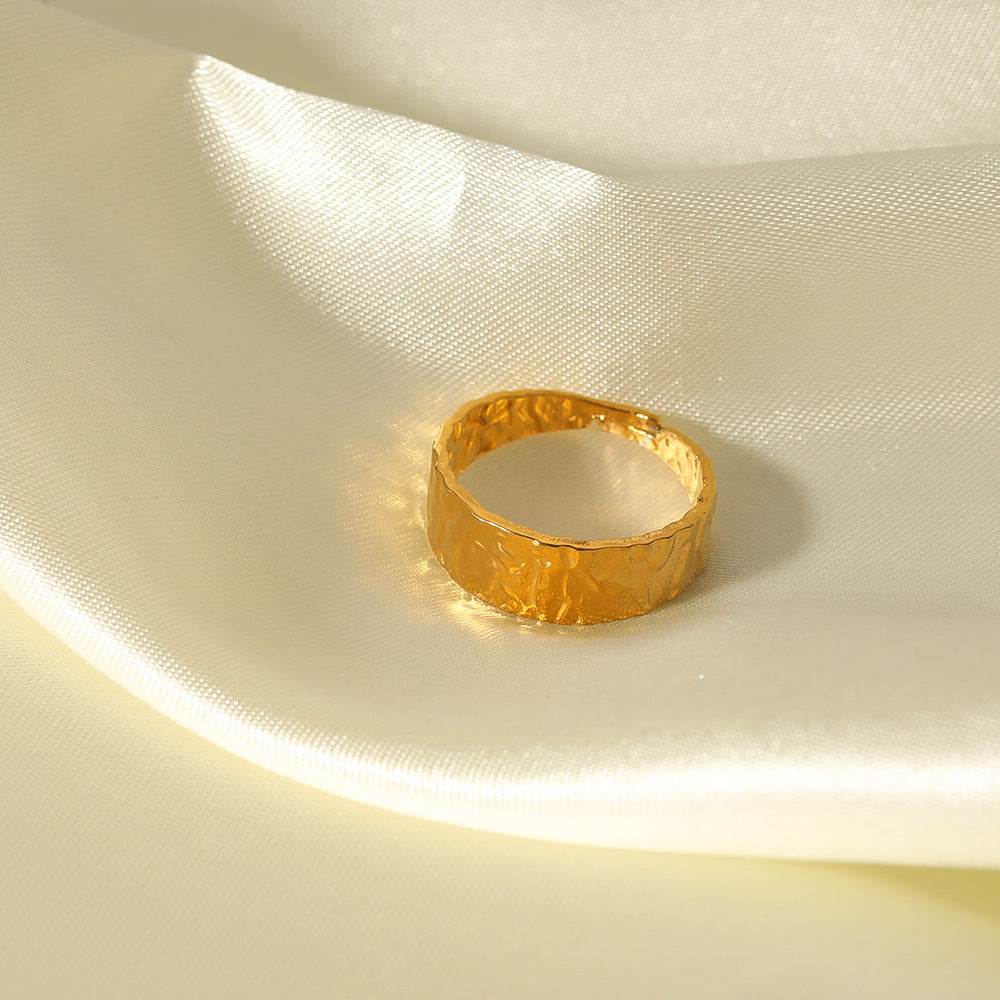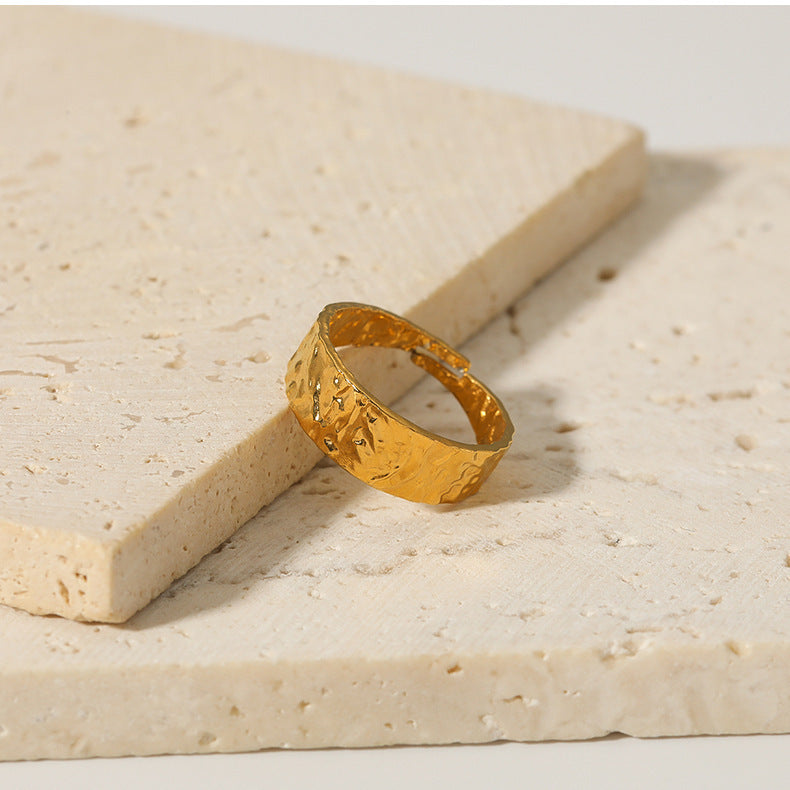 Women's Gold Plated Ring Retro Adjustable Opening Ring Personality Stainless Steel Ring Fashion Jewelry Round Ring for Her