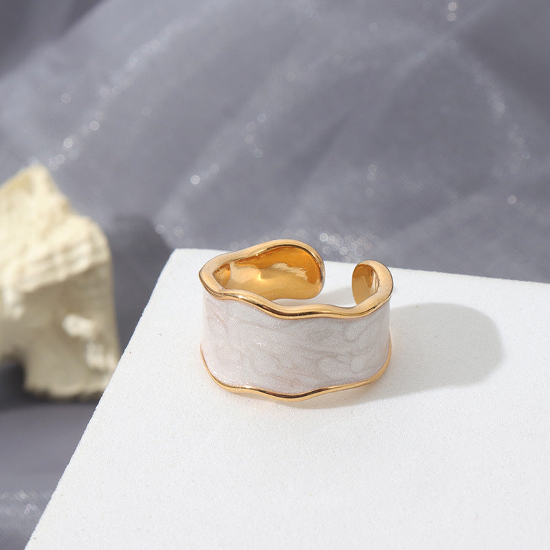 Retro Irregular Drip Glaze Ring OpeningSize Adjustable Vacuum Plating 18K Real Gold Electroplating Metal Finish