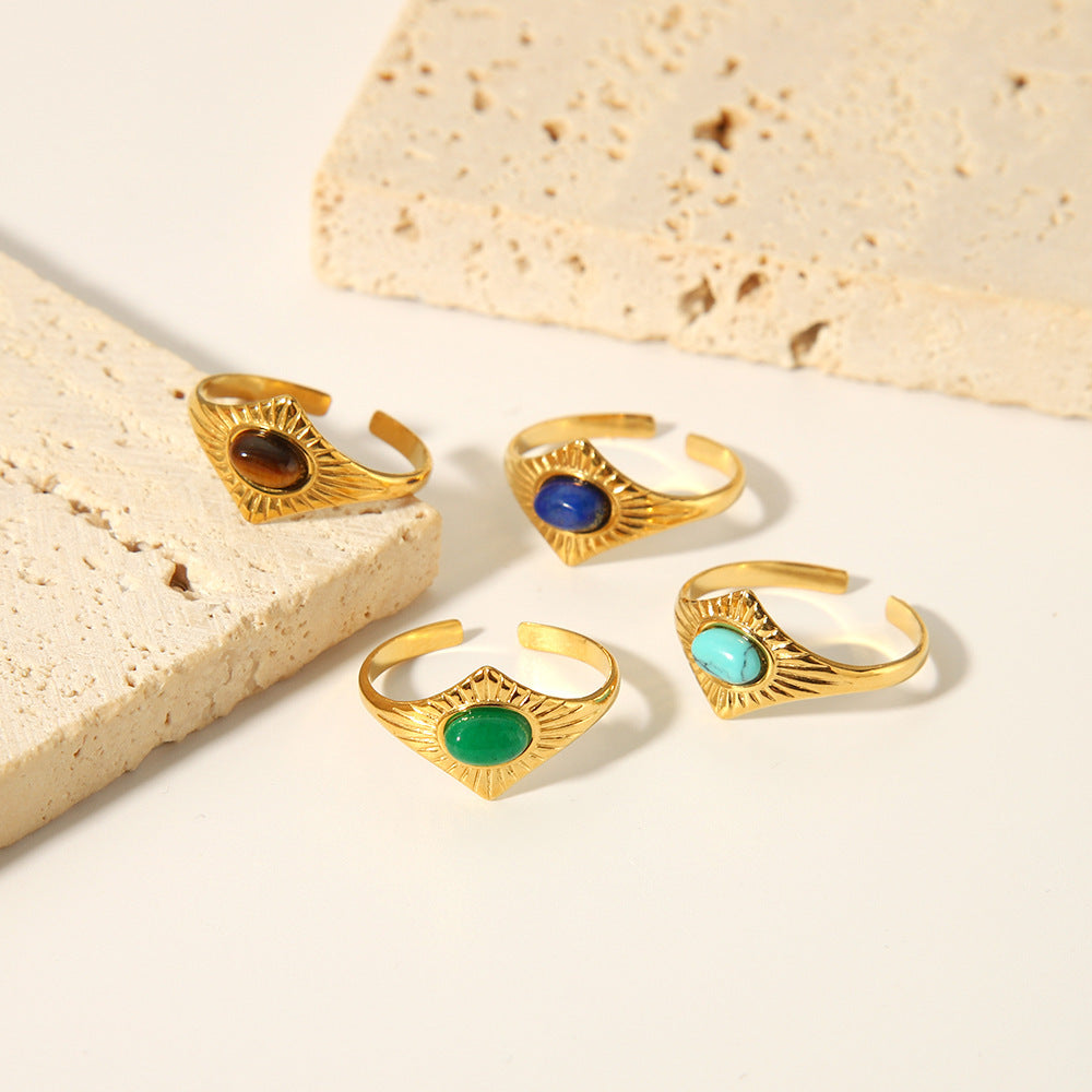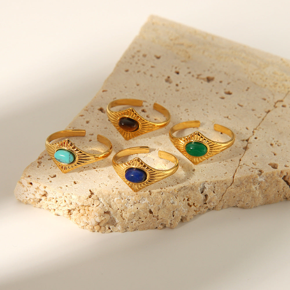Unisex Titanium Steel Ring Lapis Turquoise Devil Eye Pattern Diamond Shape Jewelry For Men Everyday Wear Style