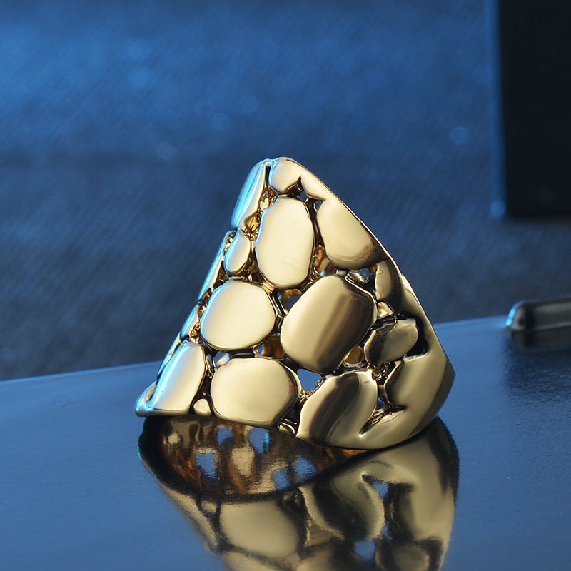 Retro Palace Style Ring Simple Elegant Alloy Gold Plated 22 By 22 Millimeter Timeless Design For Everyday Wear