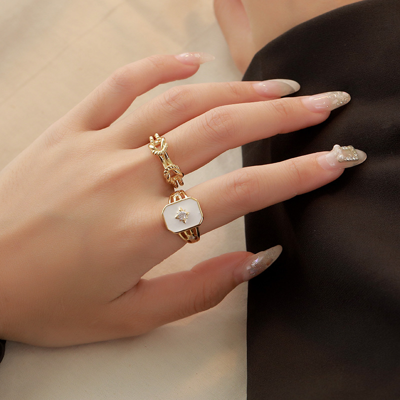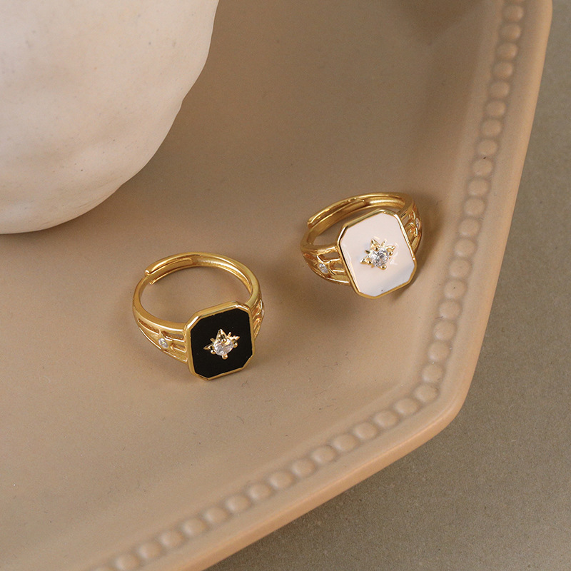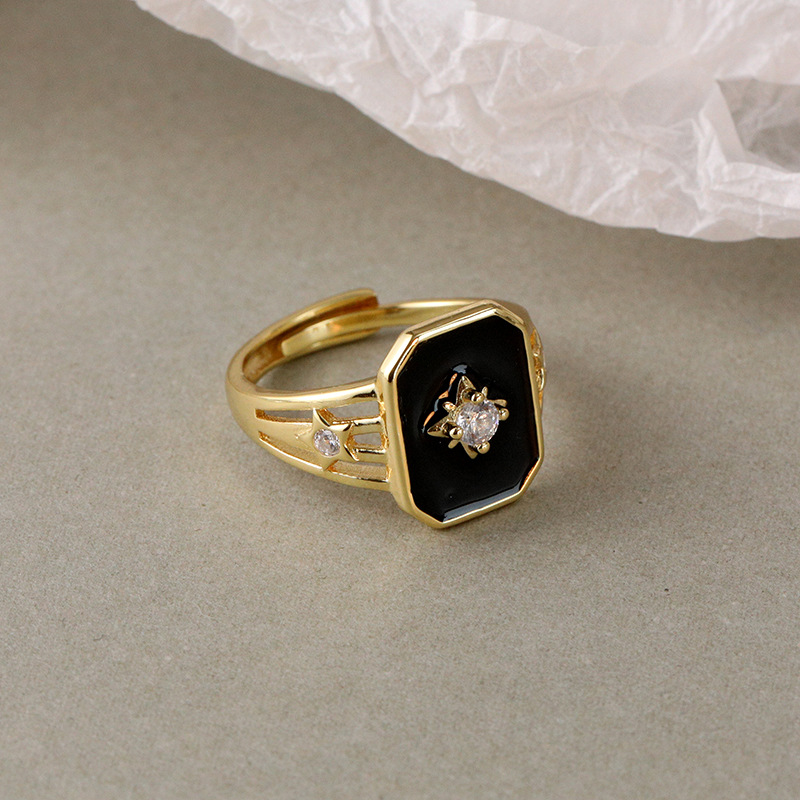 Sterling Silver 925 Adjustable Ring With Geometric Zircon Inlay Vintage Luxury For Women Electroplated Gold Tone Finish