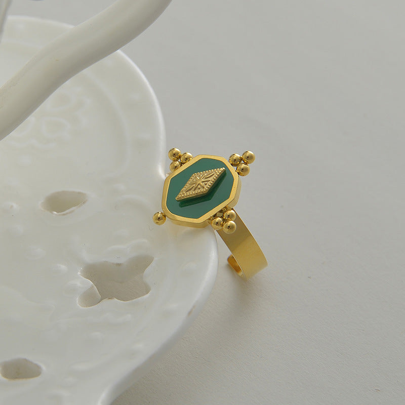 Womens Titanium Steel Ring Vintage Geometric Ring Electroplated Green Ring Fashion Jewelry All-match Ring Retro Ring Simple Ring
