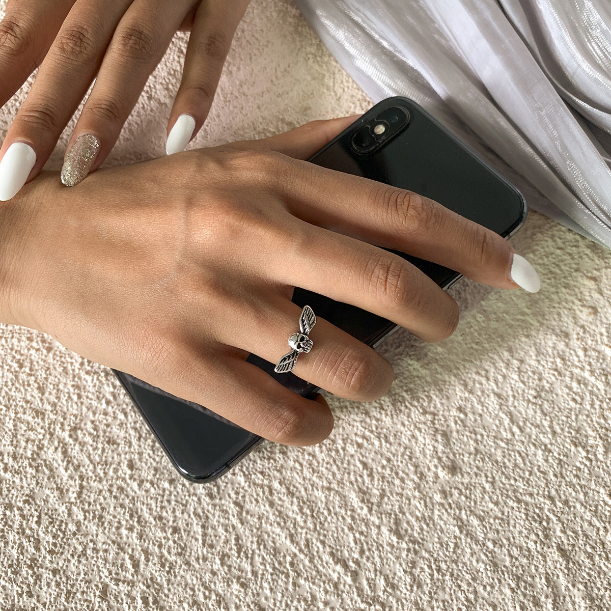 Womens Retro Skull Ring European Jewelry Alloy Electroplated Hand Ring Ancient Silver Skull Head Individually Packed