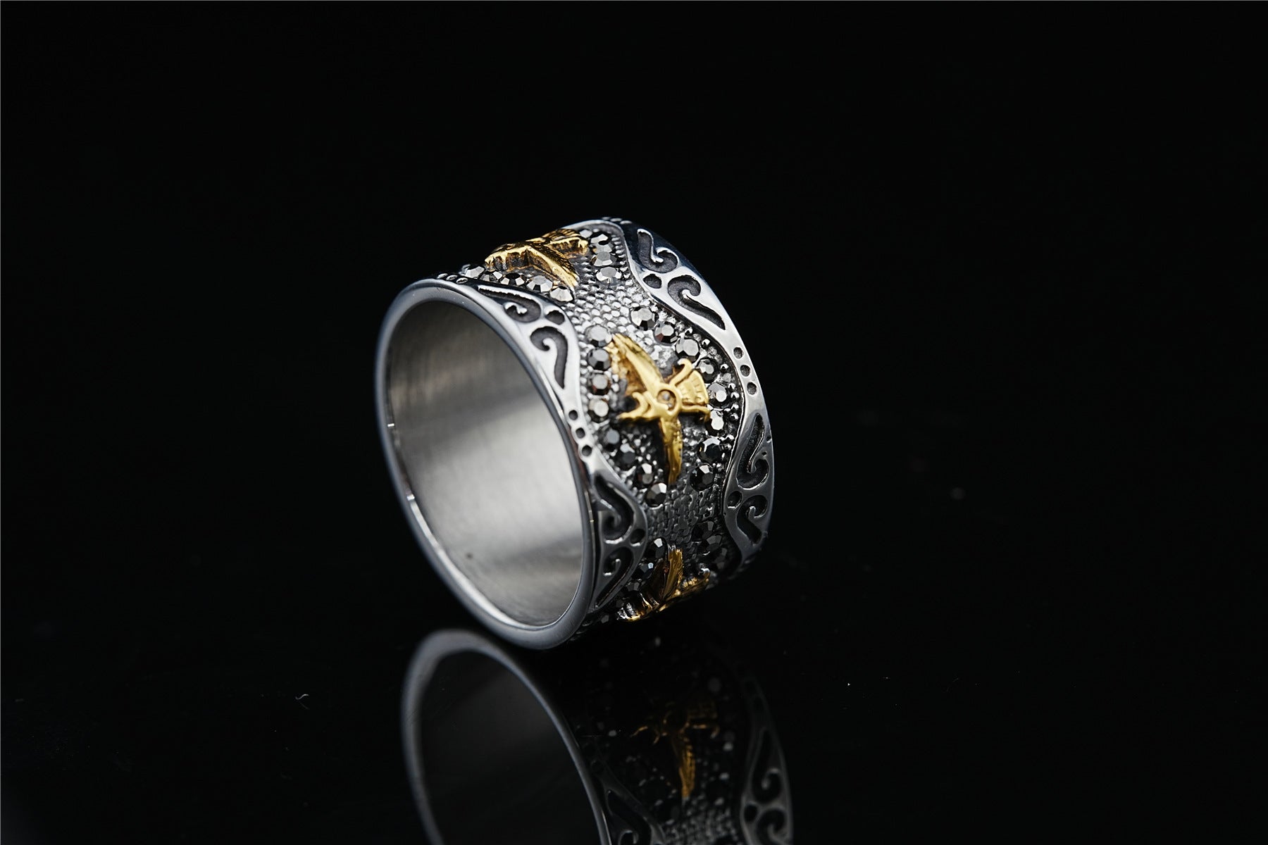 Unisex Retro Eagle Wings Ring Geometric Titanium Alloy Ring For Men Women Vintage Biker Jewelry Gift Vintage Look