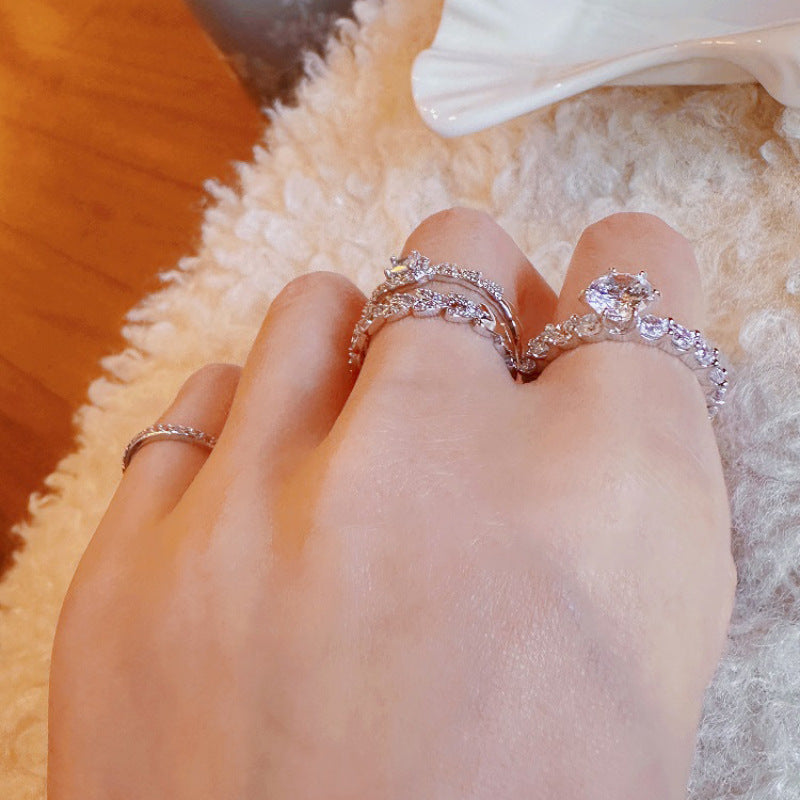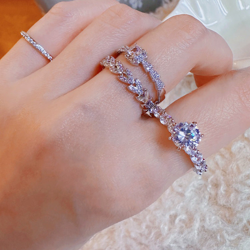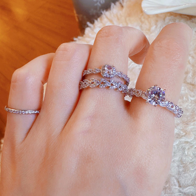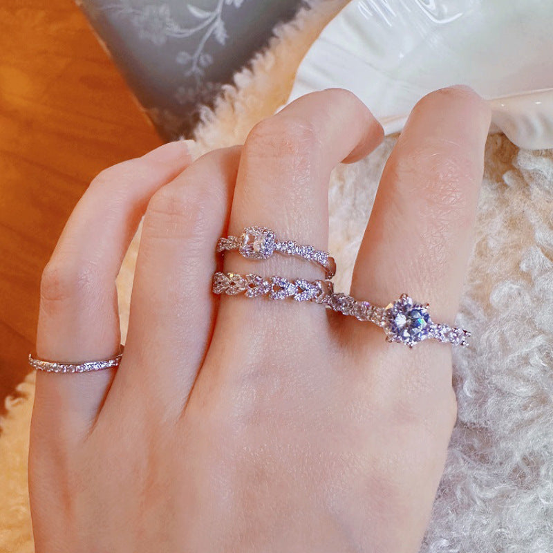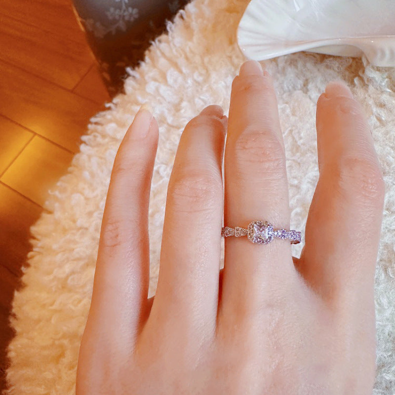 Womens Adjustable Copper Ring With Rhinestones Geometric Slim Design Refined Simple Fashion Jewelry Daily Wear