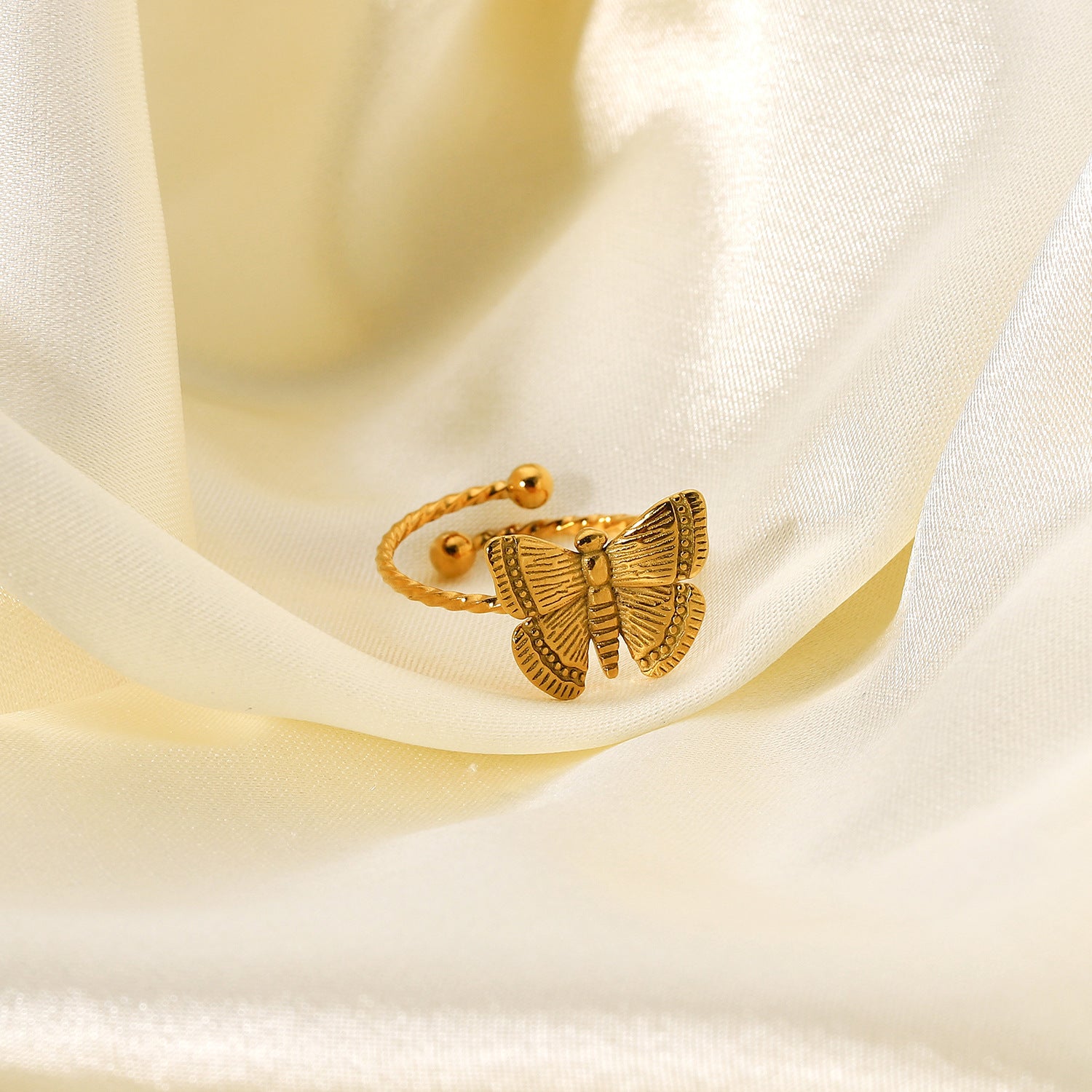 Butterfly Ring 18K Gold Plated Stainless Steel Adjustable Opening For Women And Girls Fashion Jewelry Elegance