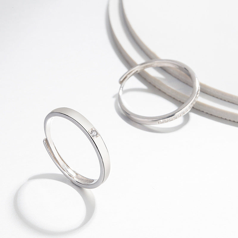 Sterling Silver Couple Rings Adjustable Wedding Bands Geometric Zircon Set For Women And Men For Couples Style