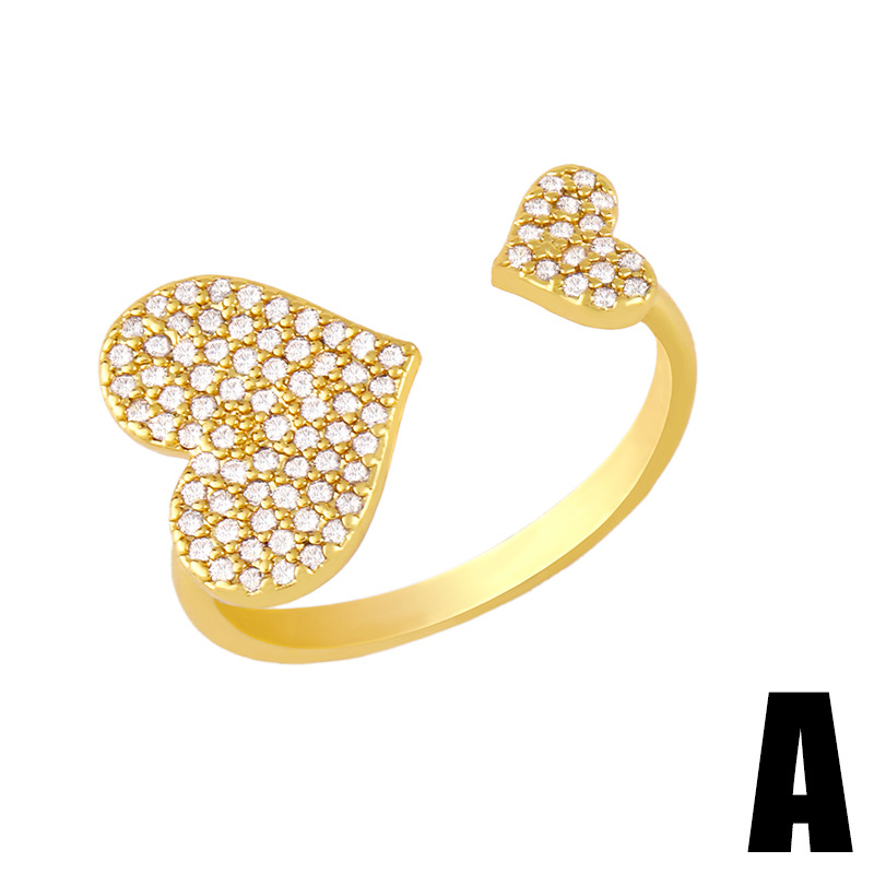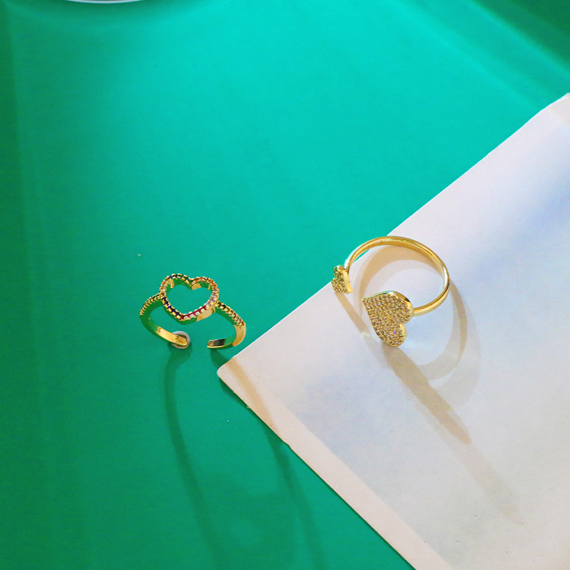 Adjustable Copper Ring For Women Heart Shaped Zircon Inlay Jewelry With Elegant European American Style Design