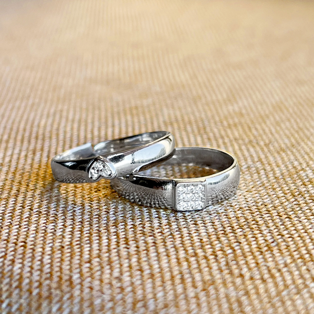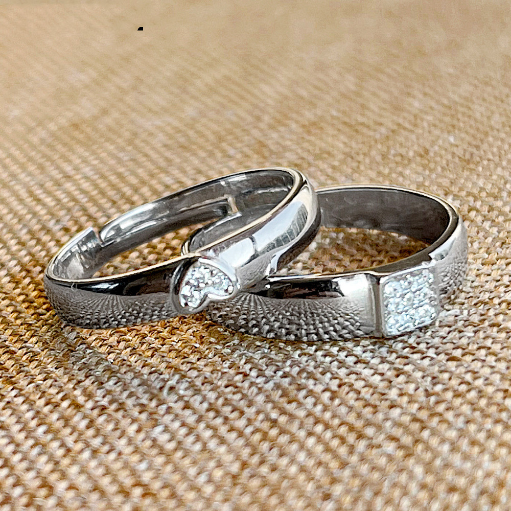 Couple Rings 925 Sterling Silver Heart Shaped Matching Bands European Design Gemstone Inlay Anniversary Couple