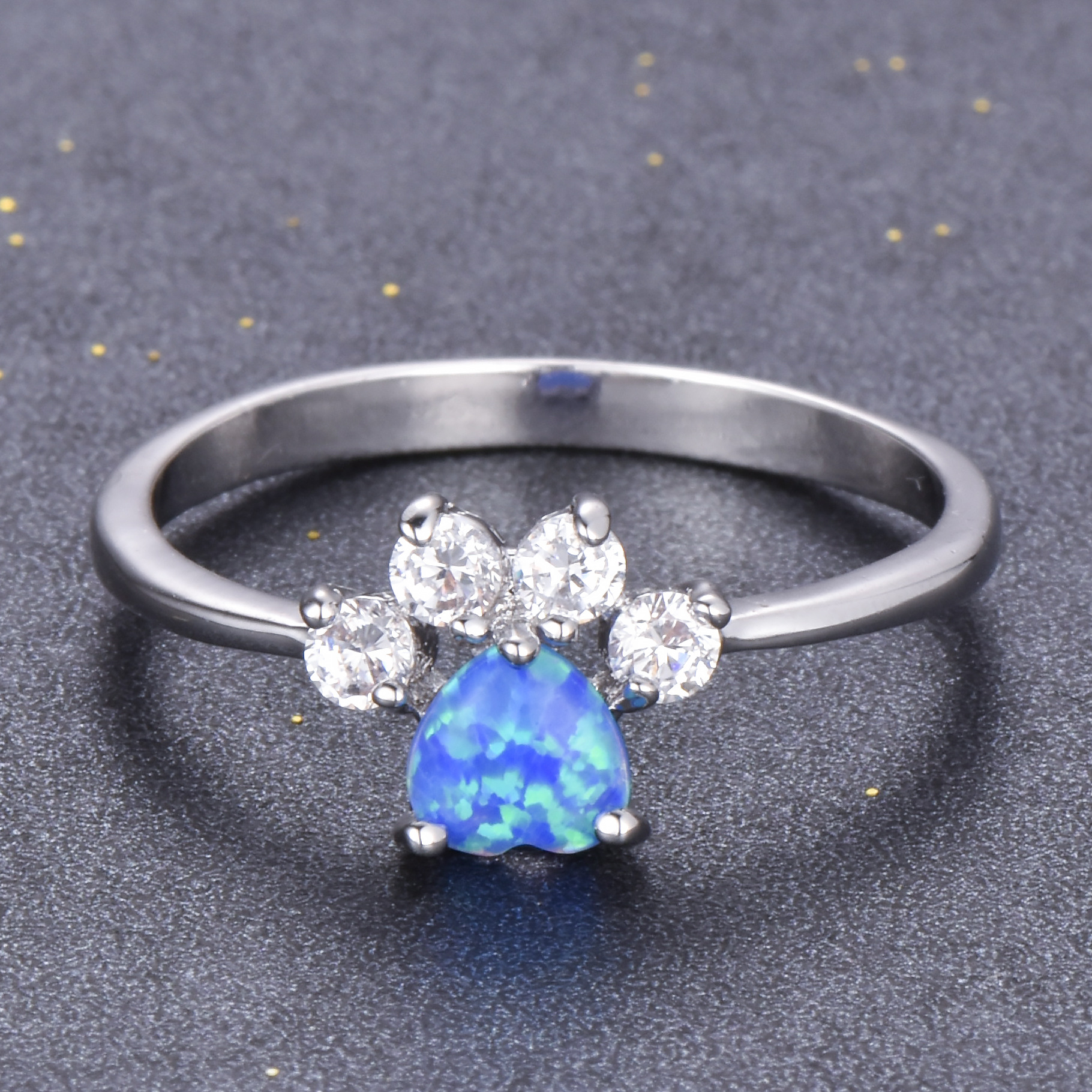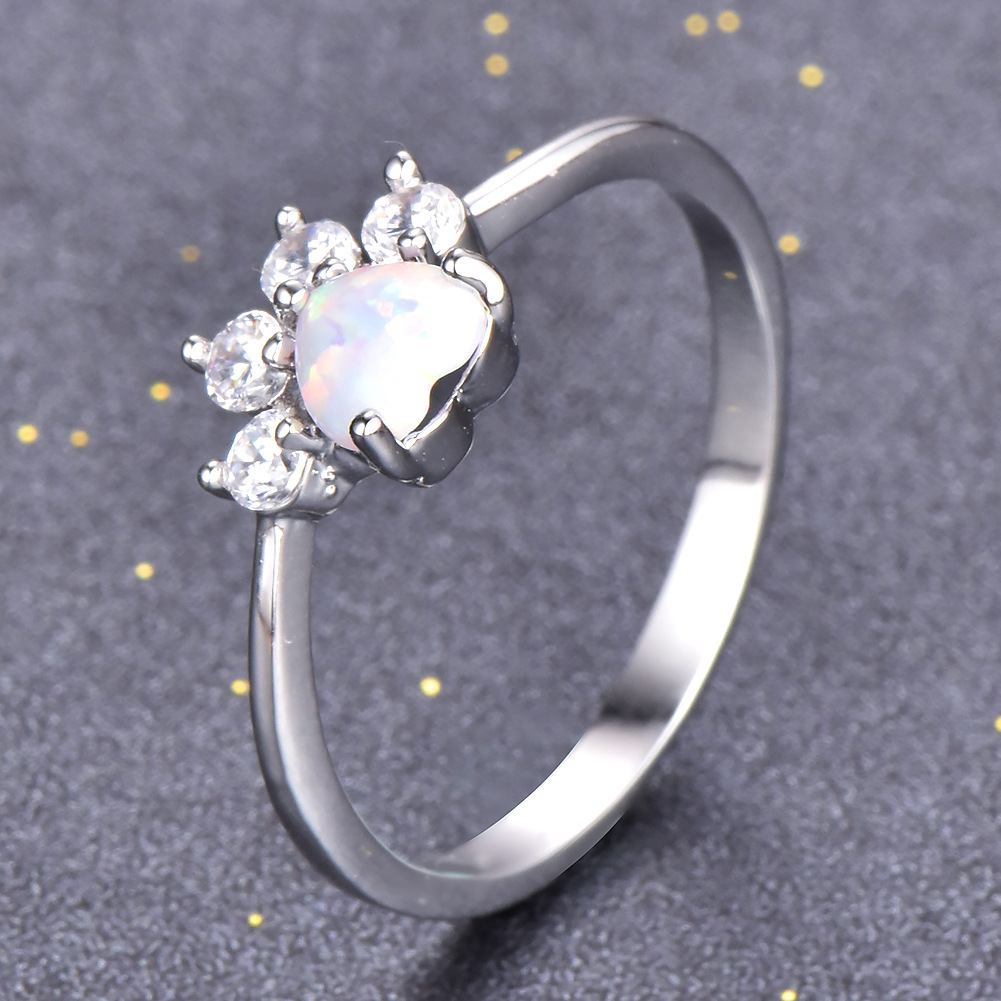 Rose Gold Footprint Heart Opal Ring For Women Gold Plated Inlay With Opal Centerstone And Colorful Sparkle Shine