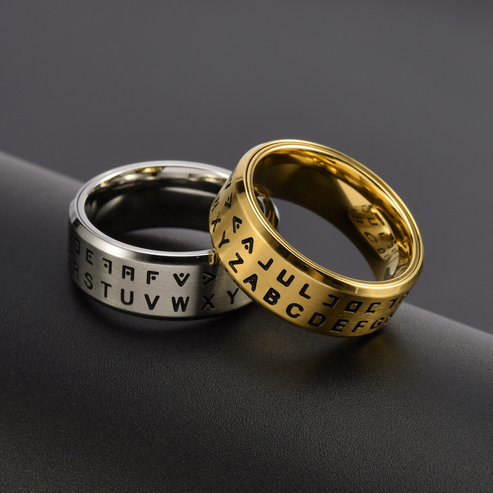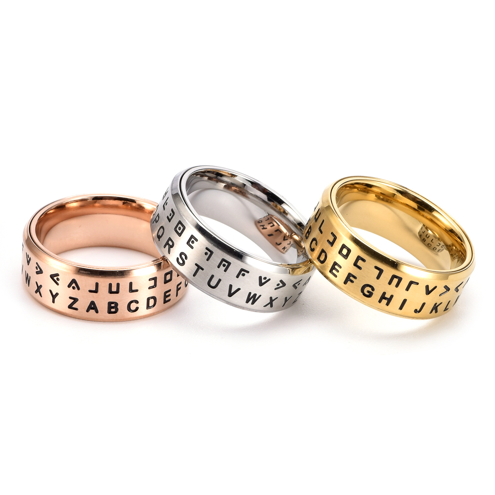 Rotating Letter Ring Mens Stainless Steel Text Ring Silver Gold Rose Gold Fashionable Jewelry Stylish Timeless