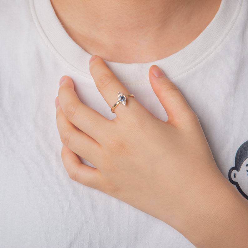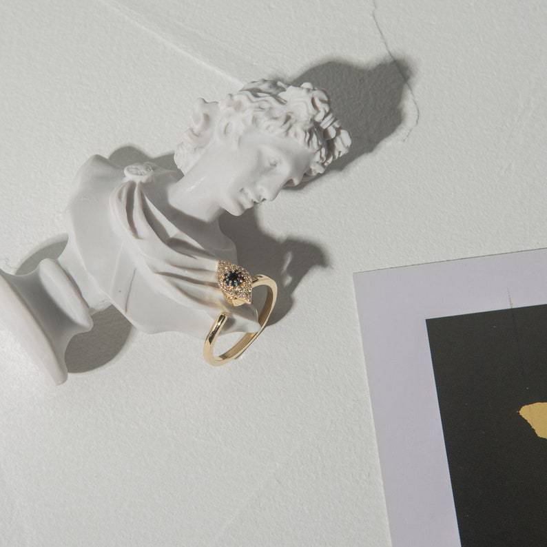 Copper Ring With Rotating Mechanism Adjustable Opening Fashion Jewelry Gold Plated Inlay Gems Demon Eye Accent