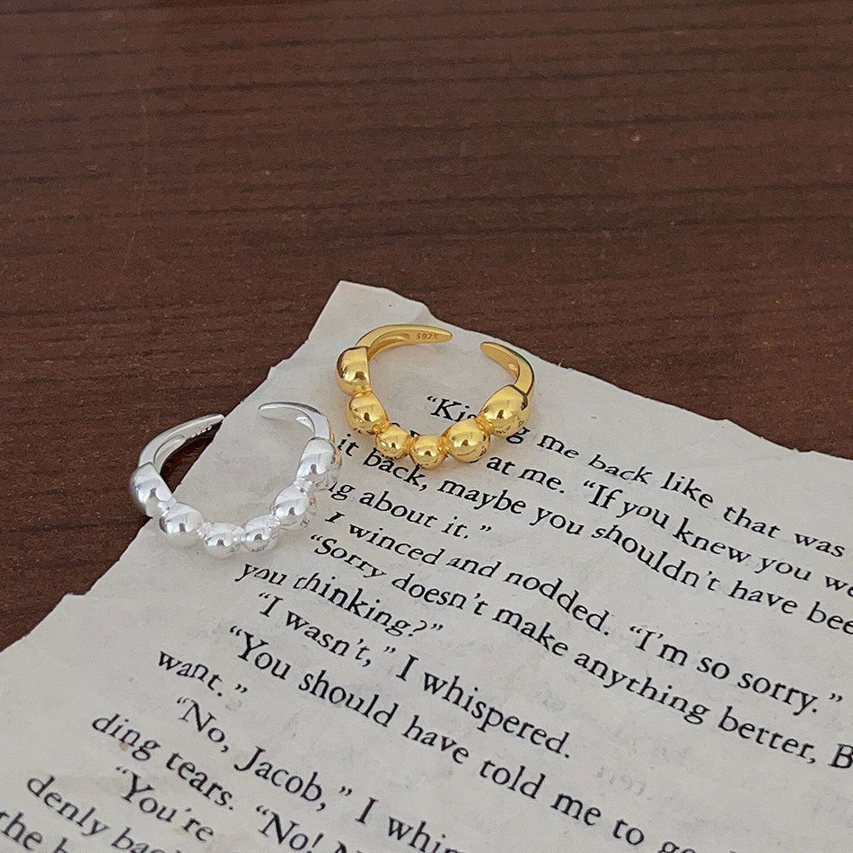 Womens Copper Ring Adjustable Geometric Wave Line Design With Round Beads Irregular Shape Electroplated Fashion
