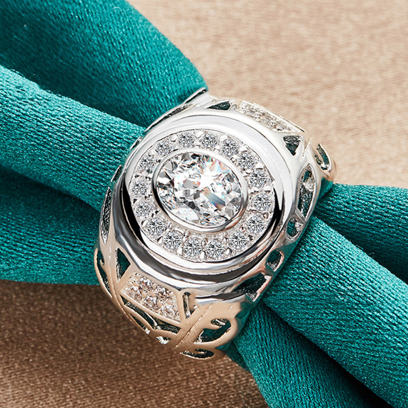 Round Zircon Ring For Women Silver Geometric Design Sizes 7 8 9 10 Classic Sleek Accessory Brushed Silver Tone