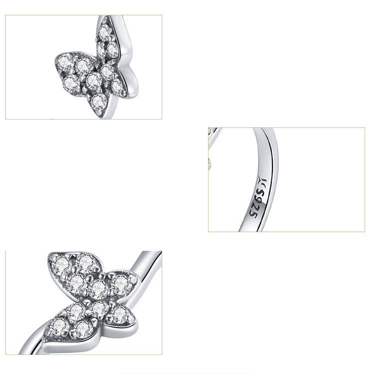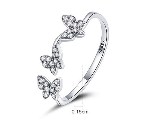 Sterling Silver Butterfly Ring Bow Design Adjustable Open Band Jewelry For Women Electroplated Finish In Modern